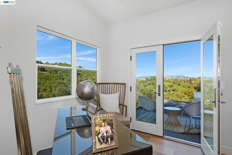 Stunning contemporary home with breathtaking valley views. This spectacular 4-bedroom, 3-bath residence offers approximately 3,623 sq. ft. of modern luxury and thoughtful design, ideal for comfortable living and stylish entertaining. The bright open floor plan features dramatic floor-to-ceiling windows capturing panoramic valley views. The chef’s kitchen includes custom modern cabinetry, quartz countertops with matching backsplash, and a spacious island. High-end GE Monogram appliances feature a professional 6-burner range with grill and double ovens, built-in refrigerator, microwave, food warmer, double-drawer dishwasher, and trash compactor. A flip-up window connects the kitchen to the outdoor entertaining area for seamless indoor-outdoor living. Modern hardwood floors, recessed lighting, and sleek glass railings enhance the contemporary style. The spa-inspired primary suite offers an oversized bathroom, walk-through custom closet, and private balcony with stunning valley views. Bathrooms are remodeled with premium finishes, including Toto toilets.The family room features a stylish dry bar and built-in speaker system throughout the main living areas and outdoor spaces. The terraced backyard offers sweeping views, fruit trees, a 15-ft MasterSpas swim spa, two electric pergolas.