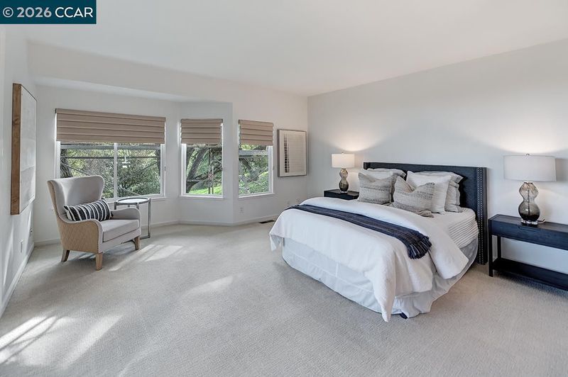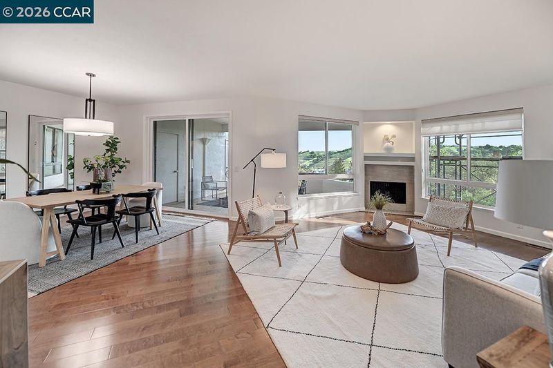 Exceptional Panoramic Views of the rolling hills. Walls of windows invite an abundance of natural light to pour into this beautifully designed home that lives like a single-family home. Showcasing a unique architectural design and soaring volume ceilings, the versatile floor plan offers a warm, inviting ambiance enhanced by premium, thoughtfully curated updates throughout. The beautifully updated kitchen features an abundance of cabinetry and generous workspace—perfect for everyday living and effortless entertaining. A formal dining room provides ample space to host memorable gatherings and special occasions with family and friends. The spacious living room is highlighted by an artfully framed fireplace, creating a stunning focal point. A separate den offers exceptional flexibility—ideal as a media room, office, or private library. The expansive primary suite is a serene retreat, complete with a charming sitting area and an oversized walk-in closet/dressing room. Spa-inspired, updated bathrooms provide a luxurious experience with refined finishes and modern elegance. Designer carpets, custom blended paint tones, and distinctive high-end details elevate the interior décor, creating a home that is both sophisticated and comfortable. Welcome home to one of the finest residence