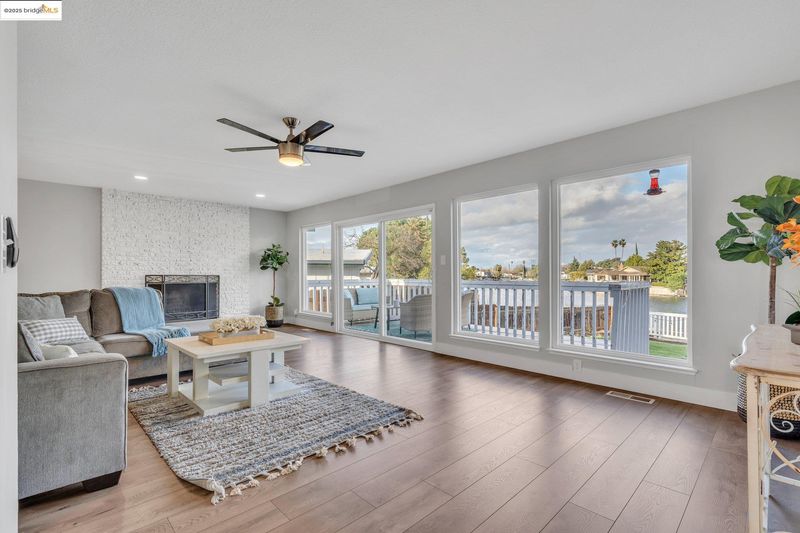 Immerse yourself in the epitome of waterfront luxury living! This magnificent property offers an unparalleled blend of opulence and tranquility, boasting 4 bedrooms, including 2 primary suites, and 3 bathrooms, all meticulously designed to cater to your every need. Step inside to discover a world of sophistication, where a beautiful fireplace and laminate flooring adorn the spacious living areas. The heart of the home, a modern kitchen featuring a convenient breakfast bar, invites you to indulge your culinary passions while enjoying the serene waterfront views. Every inch of this home has been thoughtfully curated to offer a seamless fusion of modern elegance and practical living. From the carefully selected fixtures to the expansive windows that flood the space with natural light, every detail exudes luxury and comfort. Venture outside to your own private oasis and be greeted by the breathtaking vistas of lakeside living. Whether you're relaxing on the patio or exploring the lush greenery of the backyard, the tranquility of the waterfront setting envelops you in serenity. Not to mention, the home boasts new energy-efficient windows and doors with a lifetime warranty, ensuring both comfort and sustainability for years to come. Located in the charming Lake Alhambra community