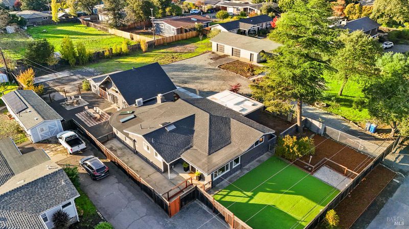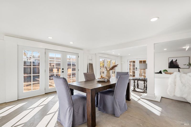 Discover the endless possibilities that await on this expansive, level 1-acre lot in South Napa. Offering a truly peaceful country setting while remaining conveniently close to town amenities, this property presents a unique blend of privacy and accessibility, and is on city services. With the home thoughtfully situated to one side of the property, the expansive and fully usable acre offers outstanding potential for those looking to subdivide or expand into a family compound. With well water dedicated to irrigation, this versatile land provides the ideal foundation for additional dwellings, gardens, or recreational spaces, all while maintaining the peaceful, private setting and beautiful Skyline Park views. The truly spacious home boasts over 3,800 SF, providing exceptional versatility with a generous layout of 5 bedrooms (including 2 en suites) and 3.5 baths. The home offers abundant living spaces, featuring multiple distinct interior areas and various outdoor entertaining areas, making it great for any season and ensuring lots of space inside and out. Ample closet and storage space throughout adds to its practical appeal. The beautifully updated kitchen is a chef's delight and the heart of the home. It features a large island with an apron-front sink, gas range with a main oven, complemented by a second built-in oven and microwave. Loads of cabinet storage, plus additional storage and a second freezer conveniently located in the adjacent laundry room. The primary suite is a private, light-filled retreat, tastefully updated for comfort and luxury. It includes a large walk-in closet and French doors that open directly onto a newly poured concrete patio. The spacious primary bath offers dual sinks, a separate soaking tub, a beautifully tiled shower, and a private water closet. Outside, the fully fenced grounds are your ultimate blank canvas for imagination. This level, open acreage is ideal for a lush garden, secure storage for utility vehicles, accommodating 4-H animals, or installing the in-ground pool of your dreams, there is room for it all! The property also features a substantial detached 1,300+/- SF garage, which provides ample workspace for hobbies or projects along with additional covered storage. Furthermore, a detached studio space is perfectly suited for a private home office, fitness room, or dedicated creative space. This is a truly unique property and an exceptional offering in Napa Valley.