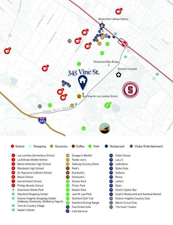 Stunning 5 bedroom, 4.5 bathroom home, beautifully updated and professionally landscaped. This luxurious home offers a superb floor plan and flexibility. The main level features a private bedroom suite, while upstairs, the primary suite is a serene retreat w/ vaulted ceiling, walk-in closet, and a beautifully appointed bath, plus there are three add'l bedrooms, two w/ shared bath and one that is en suite. An upstairs loft provides options for an office, den or play area. For added convenience, the washer/dryer are located on the second floor. The bright, airy kitchen is a chefs dream and a social hub. Crisp white cabinetry and tumbled marble subway tiles create a timeless backdrop for the granite slab counters. The oversized island features table-style seating, perfect for casual breakfasts or drinks with friends; while the built-in desk serves as the ultimate 'life-management' station. Plus, a massive walk-in pantry ensures everything has a place. The family room, fully open to the kitchen, has a bank of built-in cabinetry with space for media, surround sound speakers, a gas-log fireplace, and a cantina door to the rear yard (which is stunning!) Formal living and dining room with butler pantry. Two heating zones with A/C upstairs. Excellent Las Lomitas & Menlo/Atherton Schools.