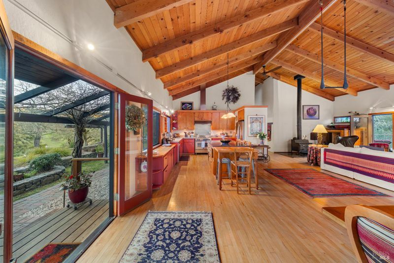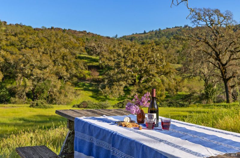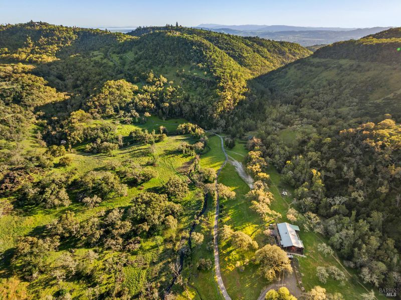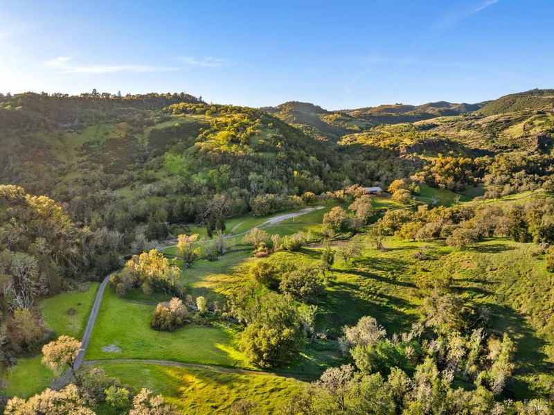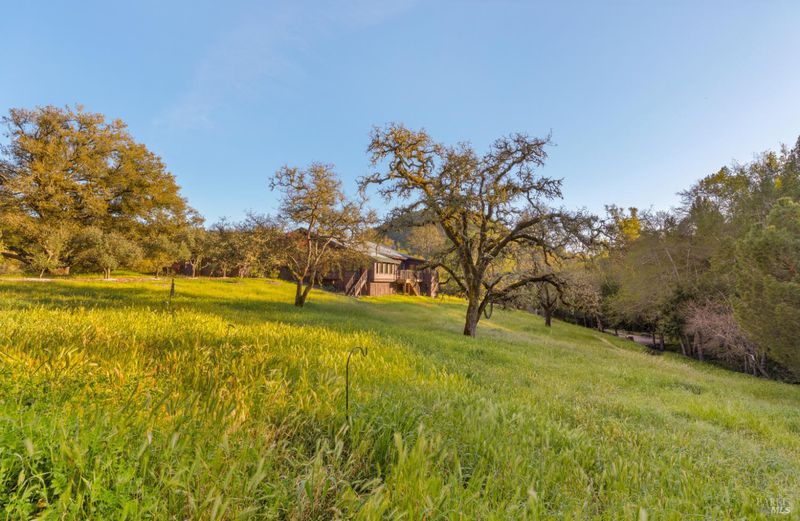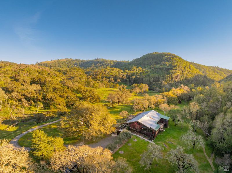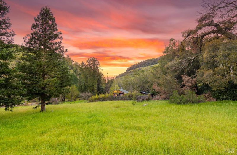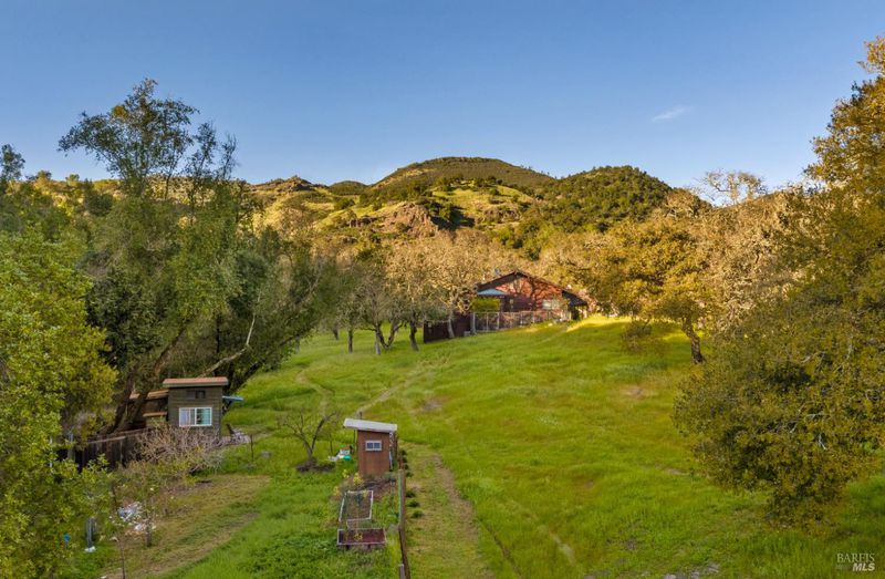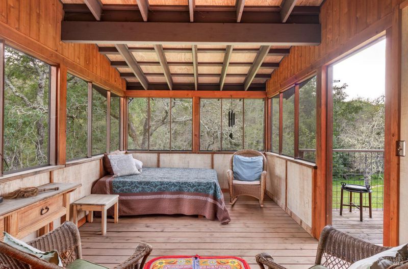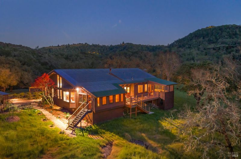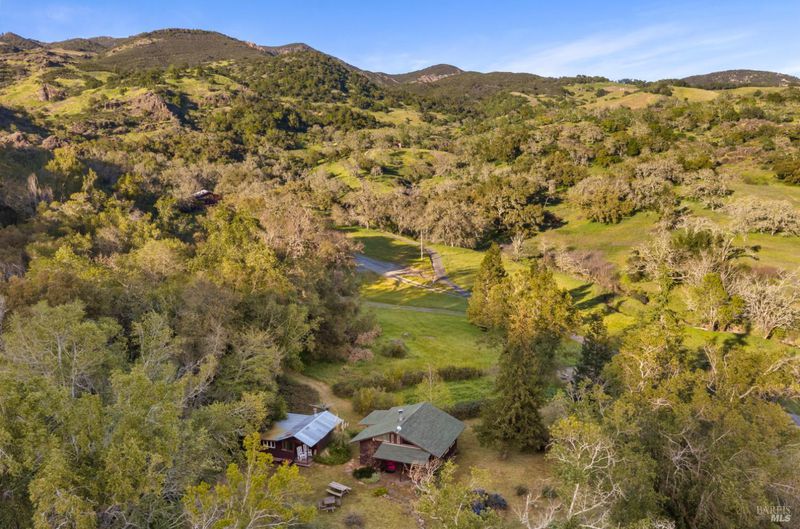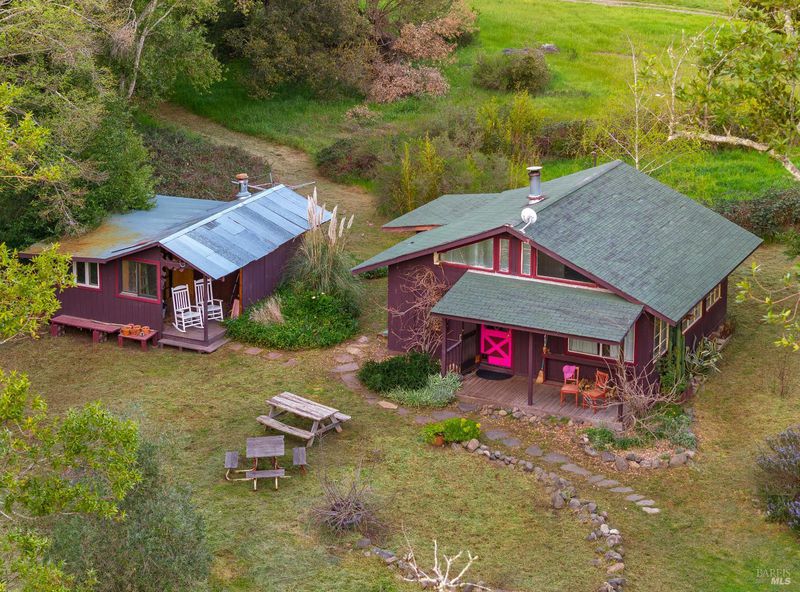 Welcome to your serene retreat on Norrbom Rd. This unique property offers the perfect blend of charm, functionality, and modern updates. The single-family home boasts 2 bedrooms, 1 1/2 beautifully renovated bathrooms and a thoughtfully updated kitchen with sleek stainless steel appliances, a range hood, pantry, and a windowed design that bathes the space in natural light. Step into the inviting living spaces adorned with stunning hardwood, dual-pane windows, recessed lighting, and an elegant chandelier. The wood burning fireplace creates a cozy ambiance, while additional rooms, such as a screened sleeping porch, home office, art studio, and loft, offer versatility to suit your lifestyle. As lovely as the house is, it's the great outdoors that sets this property apart. Situated near the top of Norrbom road, this 60+/- acre ranch is set in a wide meadow with three creeks running through it; one year round and two seasonal. The house is set among wide meadows and is cradled with surrounding ridges, some of which can be accessed by hiking trails. Once upon a time, the property served as a trapeze school and attracted curious folks from Sonoma and farther away. You will see trapezes on the property. Situated amidst the rolling hills of Sonoma, this property offers a perfect retreat to relax, create, and enjoy the beauty of wine country living. You'll feel a sense of awe sitting among aged California heritage oak trees and the ancient volcanic rocks and ridges. The only sounds you'll hear are nature and the occasional airplane. The night sky is bigger than you can imagine as stars glow so brightly. The property is ideal for a writer or artist or a family compound. It could also serve well as a retreat center. Don't miss this exceptional opportunity to own your private paradise just 10 minutes from Sonoma Plaza.