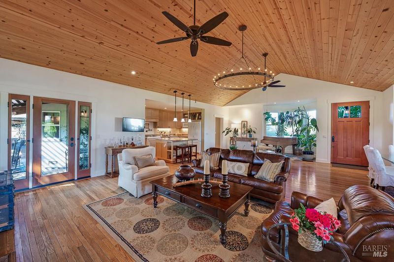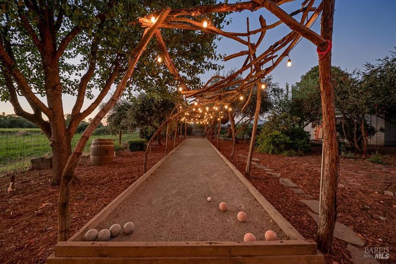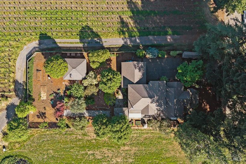 Set on nearly half an acre in the heart of Healdsburg's coveted Dry Creek valley floor, this warm and inviting 3-bedroom, 3-bathroom retreat offers a lifestyle rooted in beauty, comfort, and connection to the land. Surrounded by neighboring vineyards, framed by majestic mountain views, and kissed by mature redwoods, the property feels like a private sanctuary while remaining just minutes from the charm of downtown. Life here unfolds outdoors as much as it does inside. Multiple patios create distinct spaces for gathering, dining, and unwinding, while a wood-fired oven and artful bocce court invite long, laughter-filled evenings. Garden beds and abundant fruit trees offer a farm-to-table experience right at home, and the peaceful setting is accompanied by birdsong, rustling leaves, and breathtaking sunrises and sunsets that paint the sky daily. Inside, the fully remodeled residence blends thoughtful design with effortless indoor-outdoor flow. The main living space is both striking and welcoming, featuring vaulted ceilings, a stunning rock fireplace, and seamless connection to the kitchen, perfect for entertaining or enjoying quiet nights in. Natural materials and textures ground the home in its surroundings, creating a sense of authenticity and calm. A detached workshop and garden shed provide exciting potential for a guest space, studio, or creative retreat, adding flexibility to this already special property. Whether hosting lively gatherings, tending the garden, or simply soaking in the serenity, this is a place to slow down, savor, and truly feel at home. Warm, unique, and beautifully built, this is Healdsburg living at its finest.