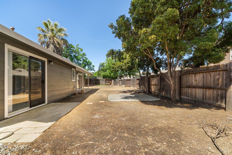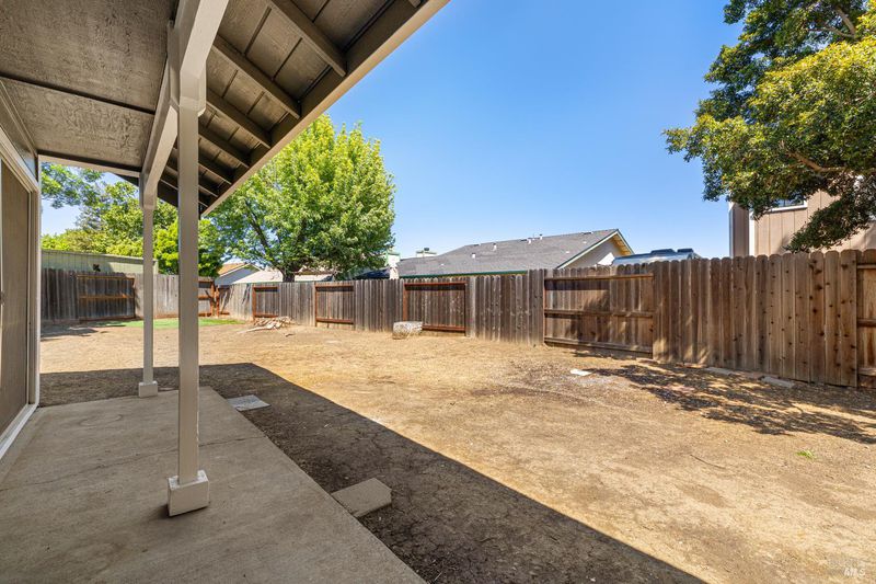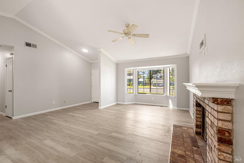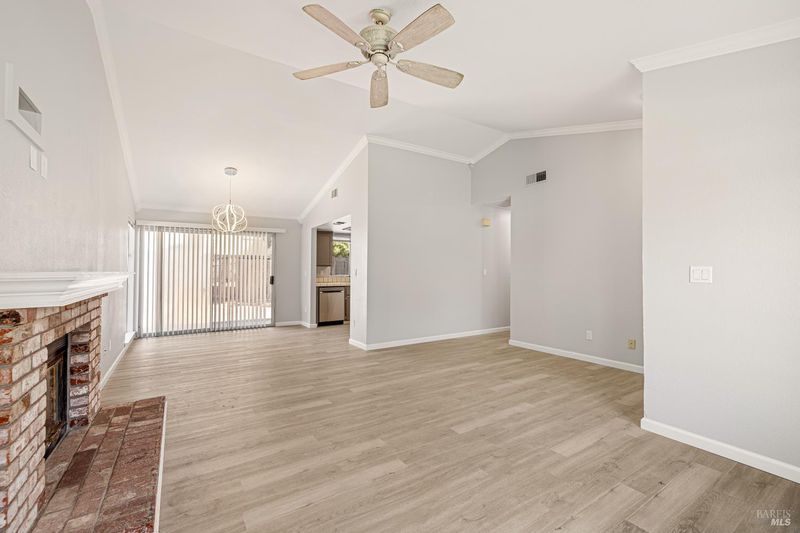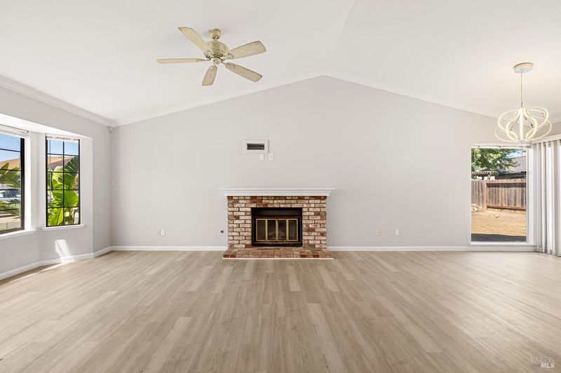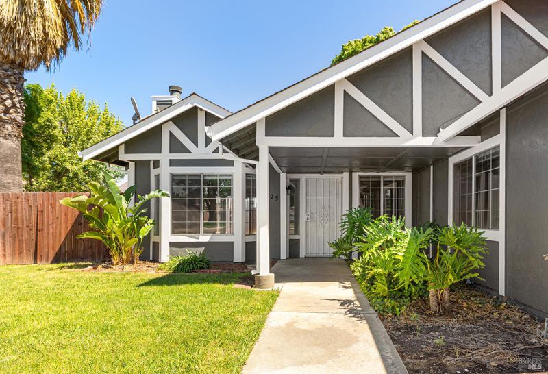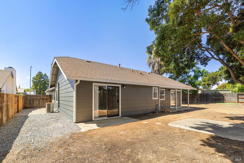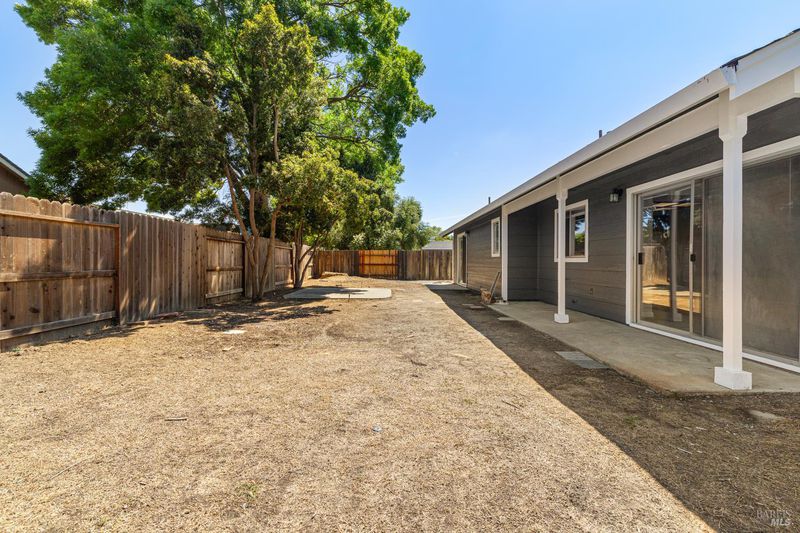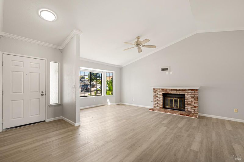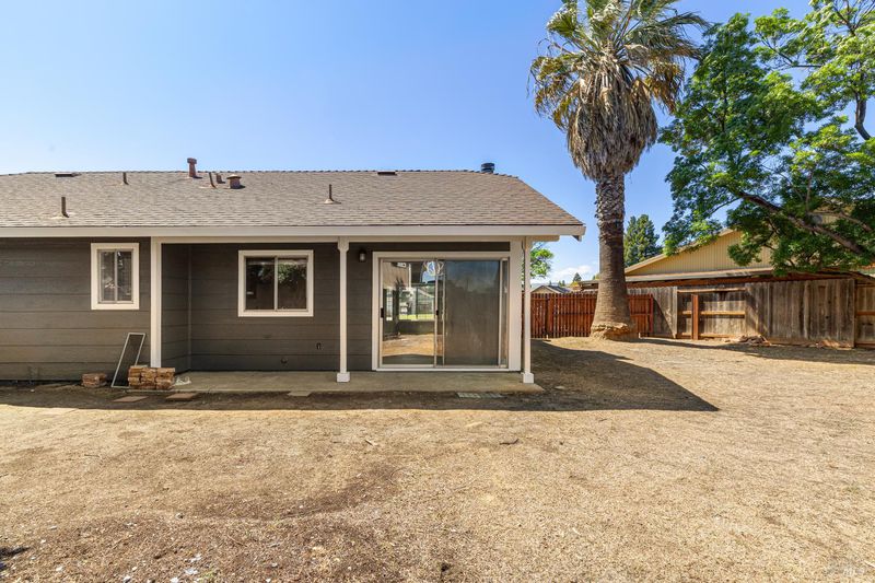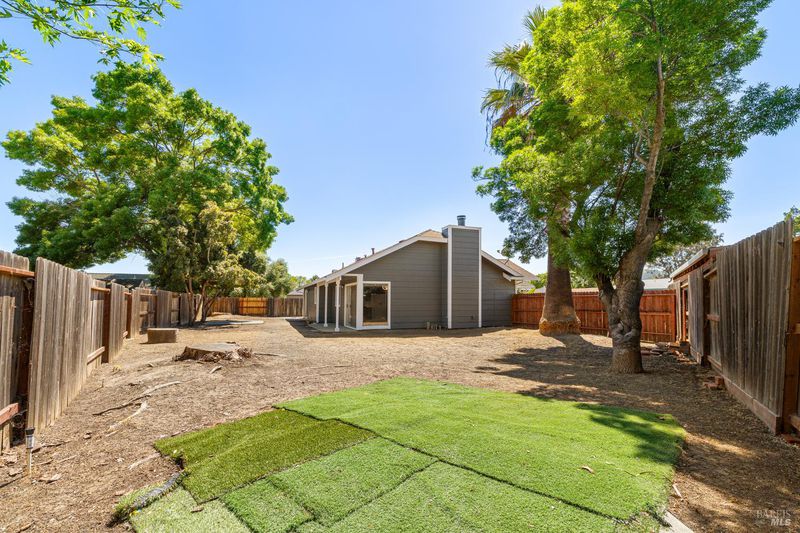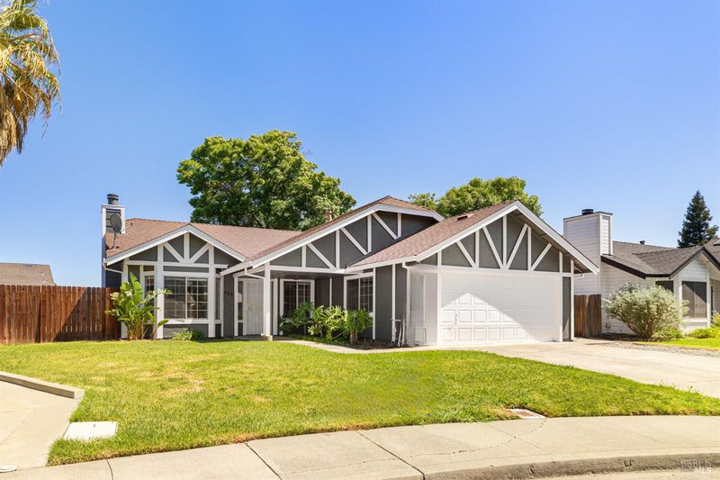 Freshly upgraded and set upon a spacious .18 acre lot in a court in Vacaville with possible RV, boat or trailer parking, this beautifully updated single-story home offers a rare blend of comfort, functionality, and outdoor flexibility, ideal for buyers seeking a move in ready home with room to grow, just minutes from Travis Air Force Base within the sought after Travis Unified School District and near vibrant Pheasant Country Park. Fresh interior and exterior paint, upgraded luxury vinyl plank flooring with new baseboards, and a statement dining chandelier enhance the bright and open layout, while vaulted ceilings with crown molding and expansive bay windows fill the living and dining areas with natural light, complemented by a ceiling fan and a classic brick fireplace with mantel that creates a warm and inviting focal point. The kitchen is refreshed and functional with freshly painted cabinetry, stainless-steel appliances including a gas range with microwave overhead and a newly installed dishwasher, offering a practical and move in ready space for everyday cooking and entertaining. The primary suite features vaulted ceilings, two generous closets, and direct access to a private patio, creating a seamless indoor/outdoor connection, while the en suite bath includes a stall shower and a separate vanity area with a convenient pocket door. Just beyond, the backyard expands into a private outdoor retreat with a covered back porch, an additional open air entertaining space framed by mature trees, and versatile side yards offering flexible space for gardening, play, storage, or future outdoor customization, creating true potential for everyday enjoyment and long-term value. Two additional bedrooms provide comfortable living near a full bath with a shower over tub and a well-equipped laundry room with cabinetry and garage access. With its single-story layout, thoughtful upgrades, indoor outdoor flow, and highly convenient location near parks, schools, shopping, dining, and commuter routes, this home delivers the space, functionality, and value today's buyers are actively searching for, making it a standout opportunity to own in Vacaville.
