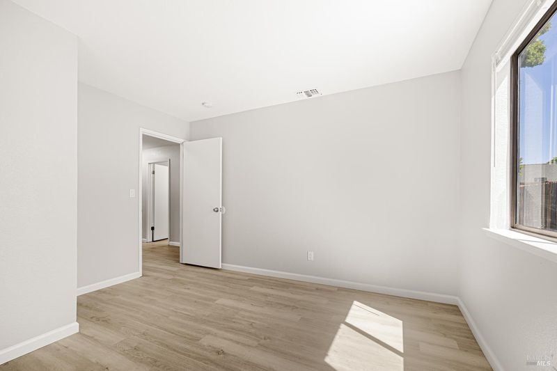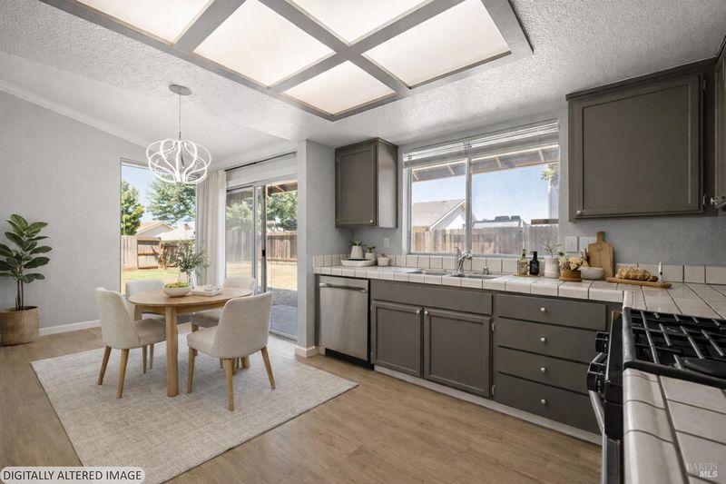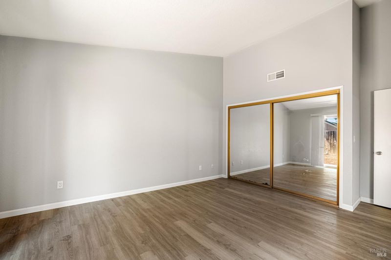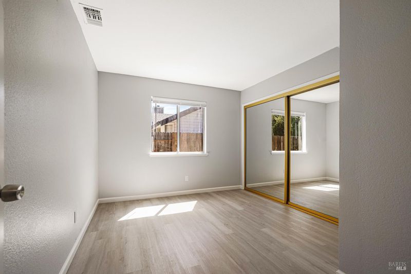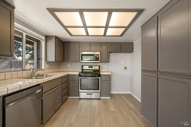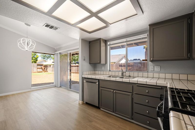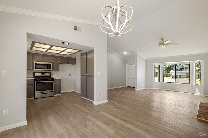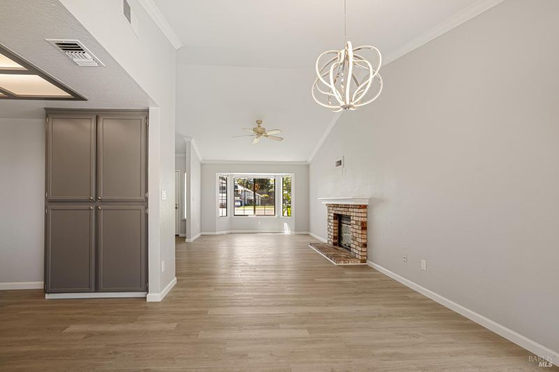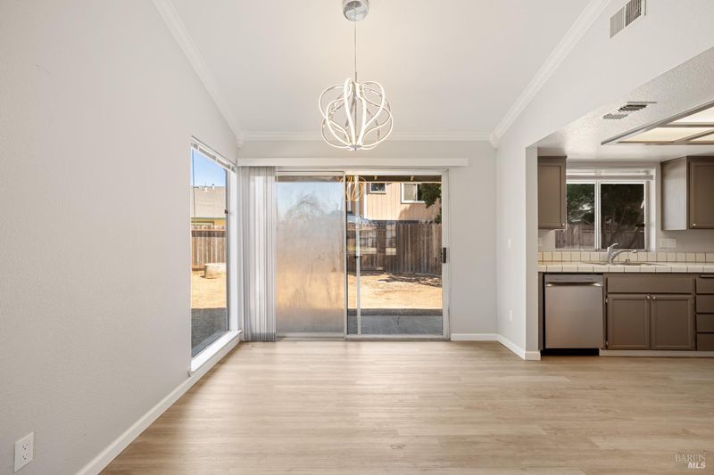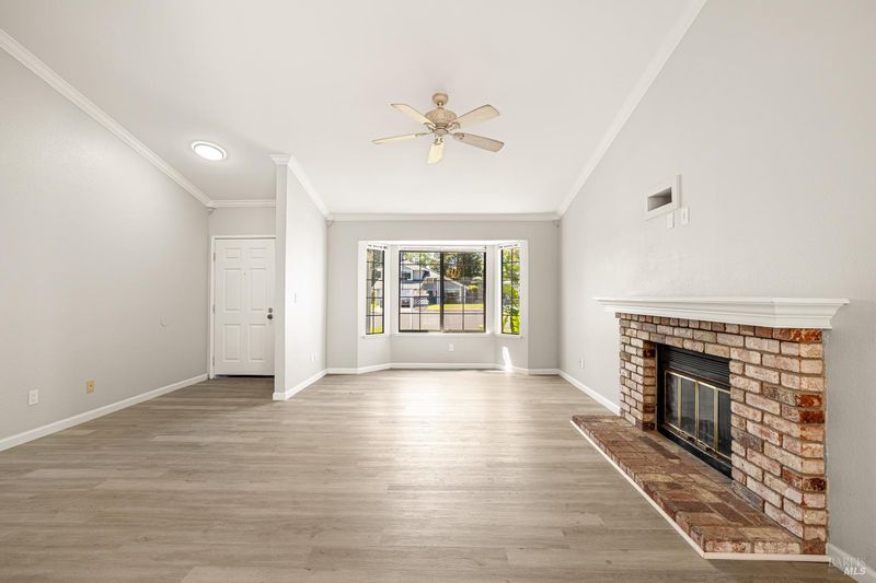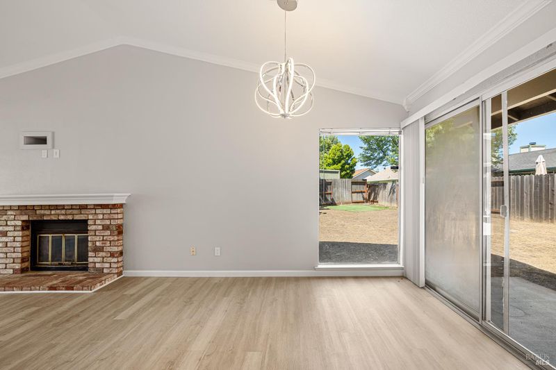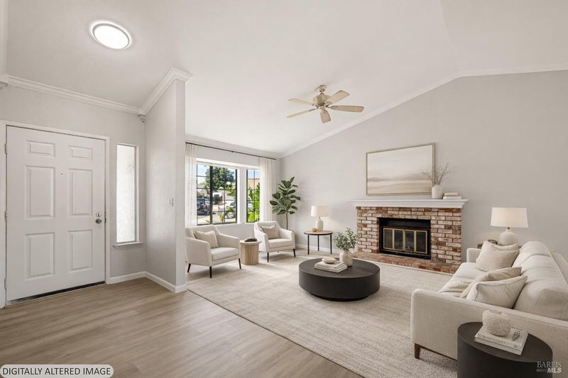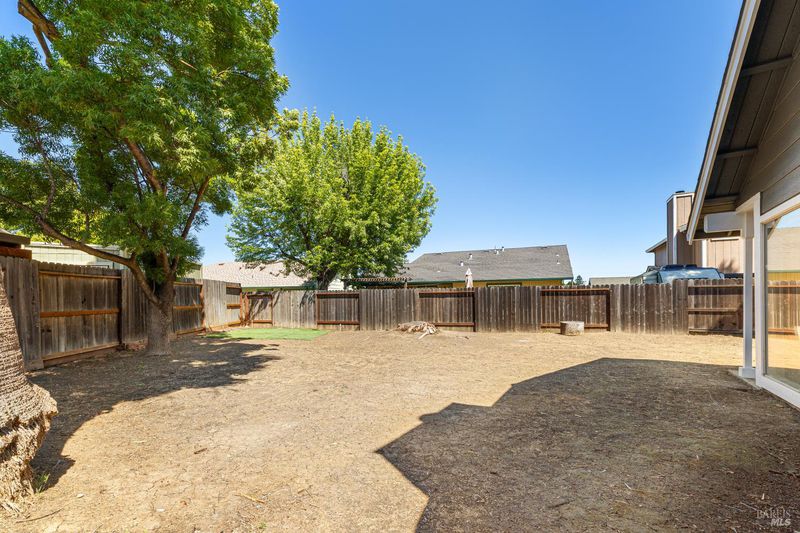 Freshly upgraded and set upon a spacious .18 acre lot in a court in Vacaville with possible RV, boat or trailer parking, this beautifully updated single-story home offers a rare blend of comfort, functionality, and outdoor flexibility, ideal for buyers seeking a move in ready home with room to grow, just minutes from Travis Air Force Base within the sought after Travis Unified School District and near vibrant Pheasant Country Park. Fresh interior and exterior paint, upgraded luxury vinyl plank flooring with new baseboards, and a statement dining chandelier enhance the bright and open layout, while vaulted ceilings with crown molding and expansive bay windows fill the living and dining areas with natural light, complemented by a ceiling fan and a classic brick fireplace with mantel that creates a warm and inviting focal point. The kitchen is refreshed and functional with freshly painted cabinetry, stainless-steel appliances including a gas range with microwave overhead and a newly installed dishwasher, offering a practical and move in ready space for everyday cooking and entertaining. The primary suite features vaulted ceilings, two generous closets, and direct access to a private patio, creating a seamless indoor/outdoor connection, while the en suite bath includes a stall shower and a separate vanity area with a convenient pocket door. Just beyond, the backyard expands into a private outdoor retreat with a covered back porch, an additional open air entertaining space framed by mature trees, and versatile side yards offering flexible space for gardening, play, storage, or future outdoor customization, creating true potential for everyday enjoyment and long-term value. Two additional bedrooms provide comfortable living near a full bath with a shower over tub and a well-equipped laundry room with cabinetry and garage access. With its single-story layout, thoughtful upgrades, indoor outdoor flow, and highly convenient location near parks, schools, shopping, dining, and commuter routes, this home delivers the space, functionality, and value today's buyers are actively searching for, making it a standout opportunity to own in Vacaville.