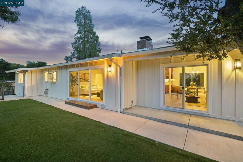 Discover this stunning single-story retreat, where fantastic curb appeal and breathtaking views perfectly capture the modern Lamorinda lifestyle. This home boasts a crisp, contemporary aesthetic featuring soaring vaulted ceilings and an open layout designed for seamless indoor-outdoor flow. The spacious living room, anchored by a sleek fireplace and large sliding glass doors, invites an abundance of natural light while framing peaceful views of Mt. Diablo and the surrounding hills. The heart of the home is a light-filled modern kitchen, stylishly equipped with premium quartz countertops and high-end Bosch stainless steel appliances. The backyard has been transformed into a private, low-maintenance oasis. Lush new faux-grass lawn provides year-round greenery, complemented by a versatile bonus shed - perfect for creative studio, home office, or extra storage. The primary suite serves as a true sanctuary with vaulted ceilings and views, while two additional bright bedrooms share a hall bathroom featuring a relaxing spa tub. Modern essentials include a new roof, smart thermostat, and smart lock. Ideally located near Theatre Square, BART, and Tilden Park, this move-in-ready gem offers a rare balance of quiet suburban luxury and urban convenience within a top-tier Orinda schools.