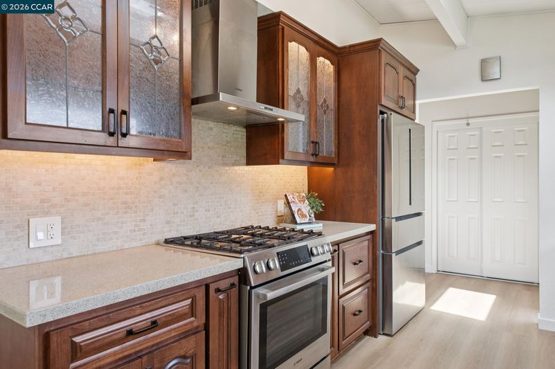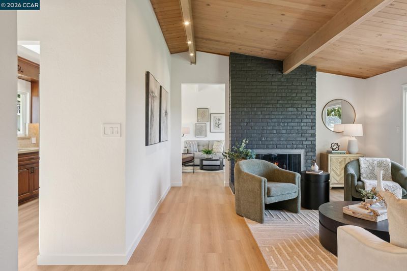 Discover this stunning single-story retreat, where fantastic curb appeal and breathtaking views perfectly capture the modern Lamorinda lifestyle. This home boasts a crisp, contemporary aesthetic featuring soaring vaulted ceilings and an open layout designed for seamless indoor-outdoor flow. The spacious living room, anchored by a sleek fireplace and large sliding glass doors, invites an abundance of natural light while framing peaceful views of Mt. Diablo and the surrounding hills. The heart of the home is a light-filled modern kitchen, stylishly equipped with premium quartz countertops and high-end Bosch stainless steel appliances.
