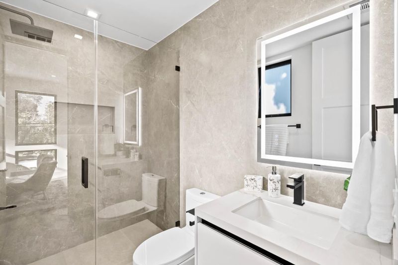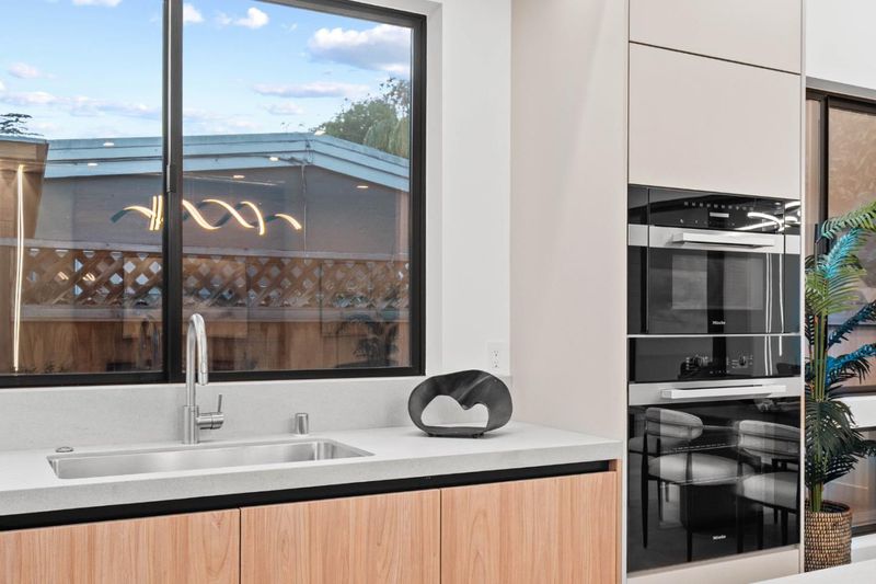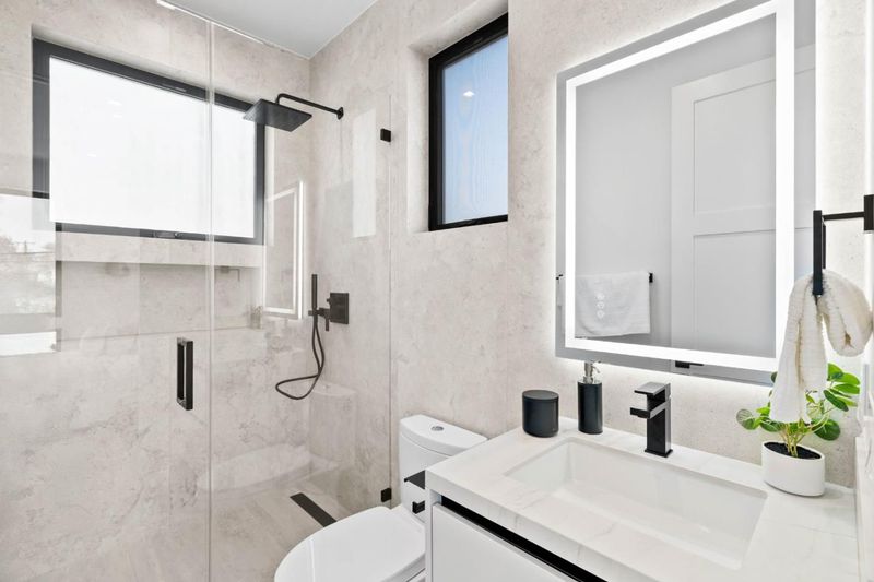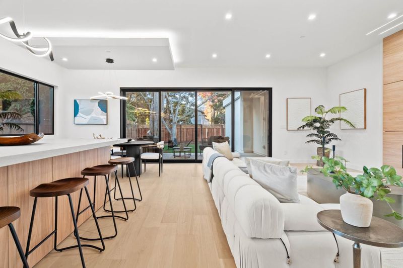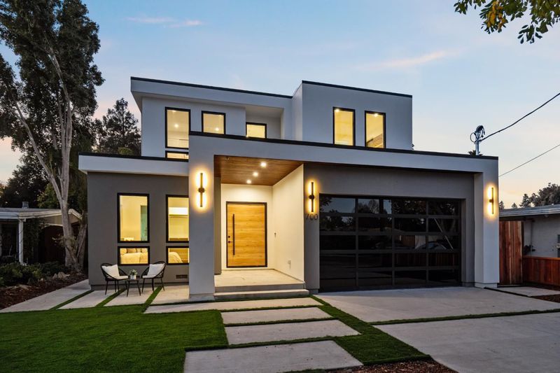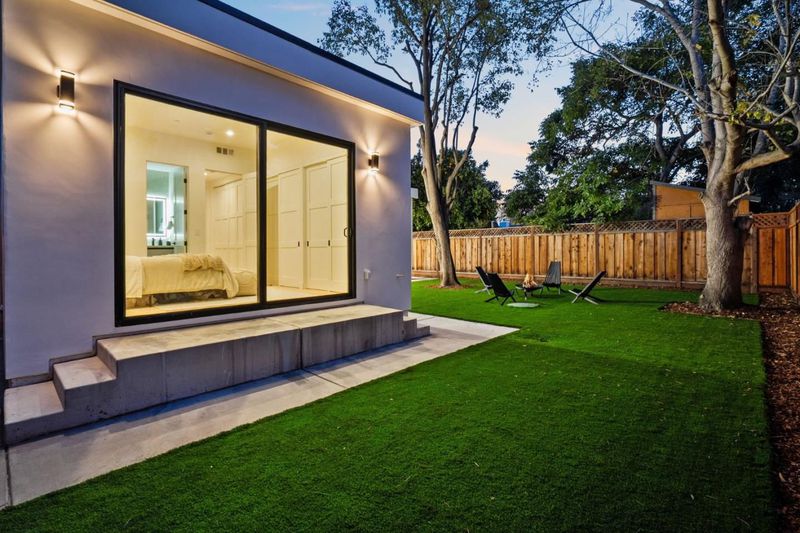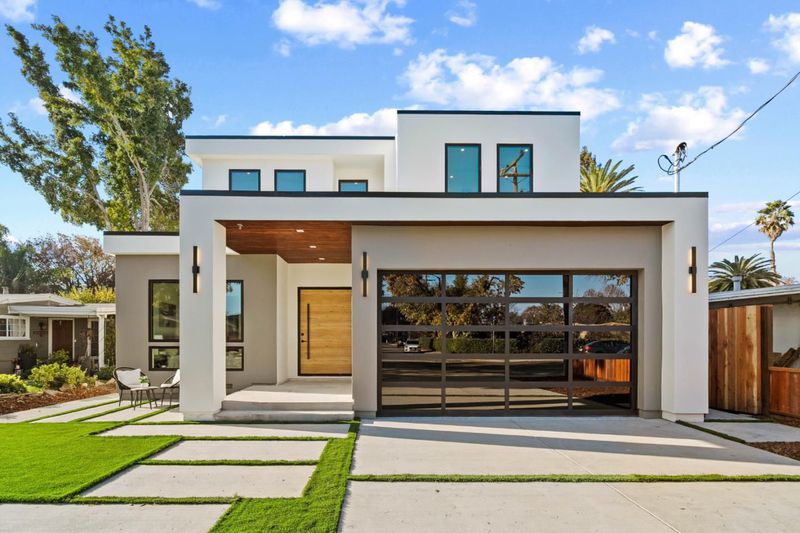 Brand new custom built home just completed at the end of 2025, this contemporary residence brings together modern architecture, luxury finishes, and exceptional functionality. With a 2,281 sq ft main home and an 800 sq ft attached ADU, the property offers a total of 3,081 sq ft of beautifully designed living space. The main level features 10-ft ceilings, a chefs kitchen with European cabinetry, a large island, and high-end Miele appliances. The primary suite offers a custom walk-in closet and a spa-inspired bath with oversized Spanish tile, double vanities, a freestanding tub, and a rain shower. A 16-ft wall of multi-sliders opens to a spacious covered patio, perfect for year-round entertaining, with a low-maintenance yard designed for relaxing, hosting, or play. All six bedrooms include private full baths for exceptional comfort. The ADU features its own entrance, laundry, and electrical meter ideal for guests or rental income. Additional upgrades include a fully integrated Roborock S8 MaxV Ultra vacuum and mop system & dual independent solar system (Main house+ADU) with high-efficiency Hyundai panels and Enphase inverters. Located near top schools, Castro Street, Caltrain, and major tech companies, this home delivers convenience and elevated Mountain View living