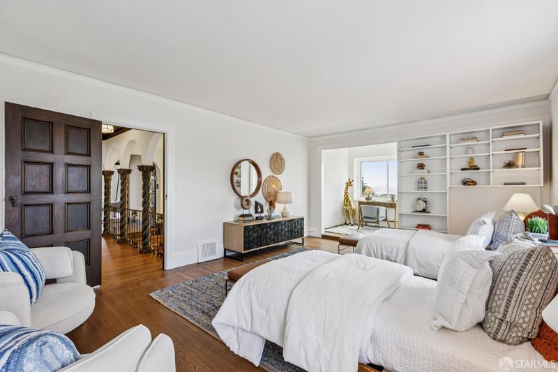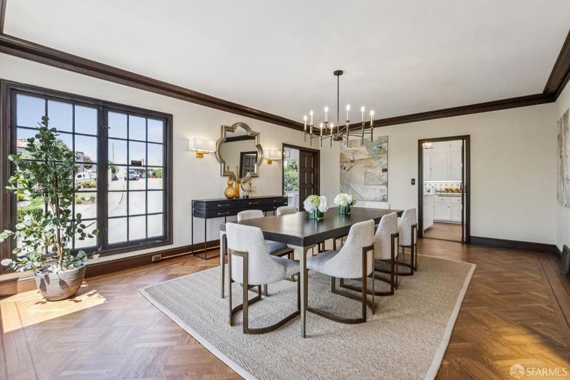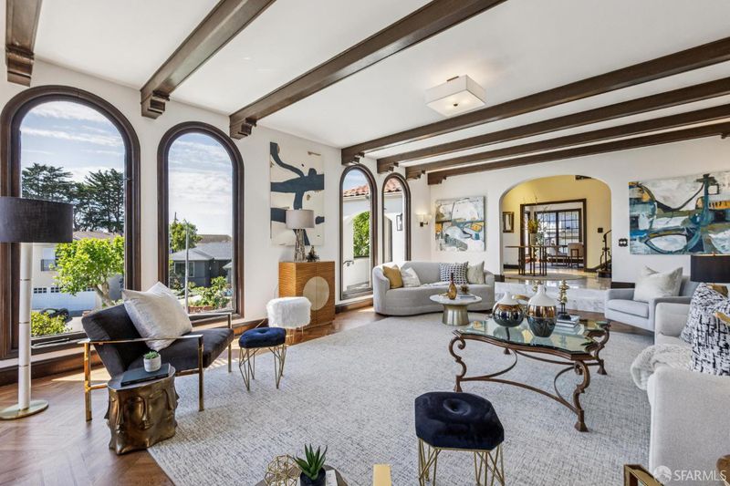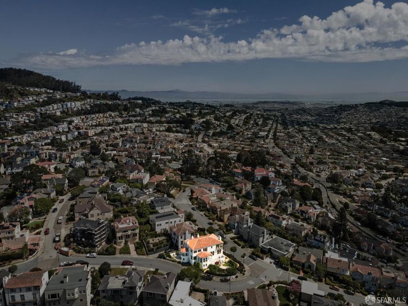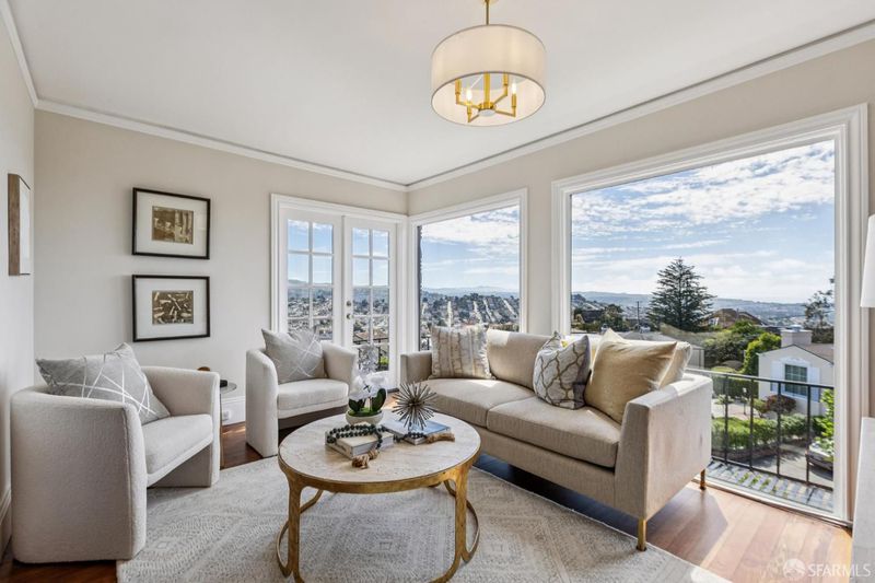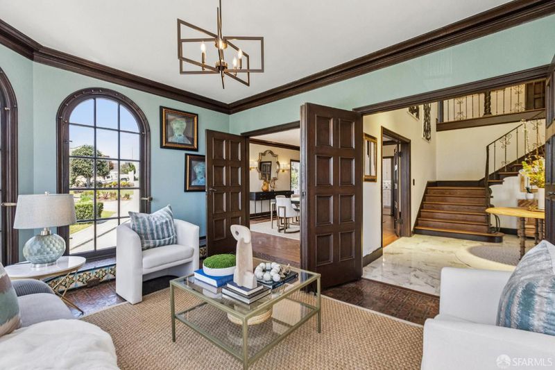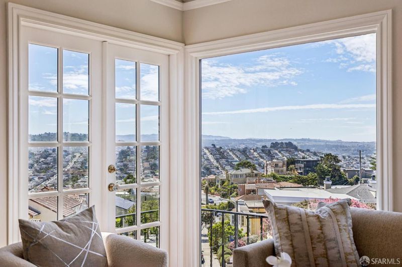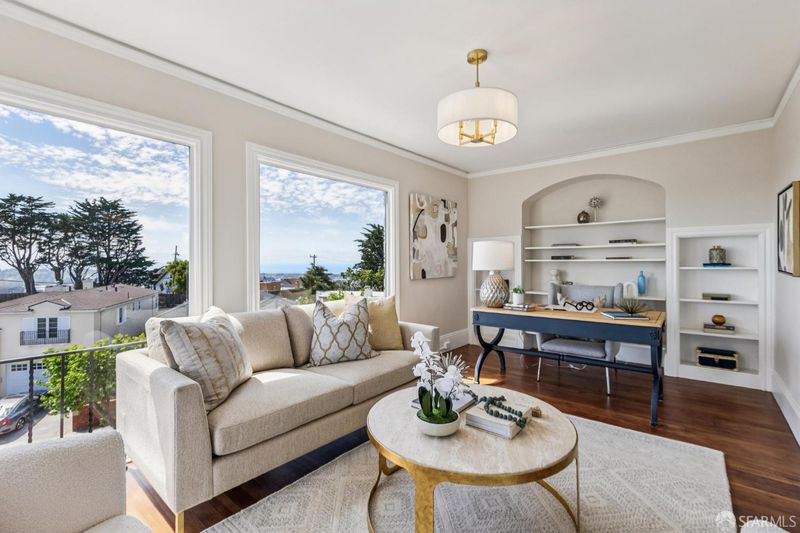 Prominently presiding over an enclave of impressive homes, this rare Monterey Heights property delights the senses with its grandeur, architectural pedigree and spectacular views! The incredible scale of the home offers the new owner an opportunity to reconfigure to meet their specific lifestyle needs. Quality materials and craftsmanship are hallmarks of this building era and are superbly displayed throughout the home. Situated on a sizable lot, wrought iron trellises and a flourish of colorful flora merge with stone walkways & privacy hedges. Designed for expansive living and gracious entertainment, a dramatic two-story foyer with curved wrought iron railed staircase graces the entry. The elegant dining room adjoins a peaceful den/office bathed in natural light. The refreshed classic eat-in kitchen features custom designed Italian tile, newer stainless appliances and a sunny breakfast room for casual dining. A spacious guest bedroom and hall bath, perfectly separated from the public rooms, completes the main level. Measuring at over 1,600sqft, the private upper level and was originally designed for 3 sizable bedrooms but is currently configured as 2 oversized bedrooms w/offices, with the opportunity to reconfigure these rooms, as needed. The grand primary suite features two walk in closets, Juliette balconies and a large adjoining room, ideal as an office or nursery with breathtaking ocean views. A well-scaled second bedroom also features a private office/den area with more ocean views! The expansive lower level is comprised of a casual family room with built-in bar. This level also includes a laundry room, 1/2 bath and several add'l rooms that could be utilized as a home gym, private office space and/or for sporting goods storage. This level has endless development possibilities such as an in-law, ADU or another primary suite. Owned by the same family for 60 years, the recent and extensive capital improvements and structural upgrades create the backdrop for the next stewards to begin their own legacy. Monterey Heights is a serene residential neighborhood known for its tree-lined streets and breathtaking hillside and ocean views. Residents enjoy nearby hiking trails and the wonderful shops and cafes of the popular West Portal shopping corridor. With a quick commute to SFO, Monterey Heights provides the perfect blend of convenience, natural beauty, and community.