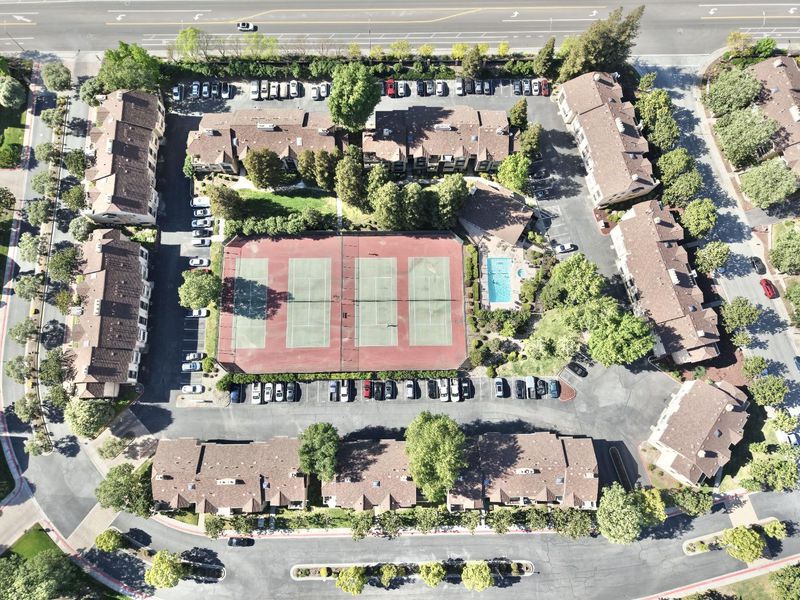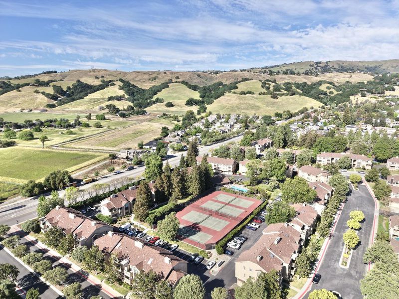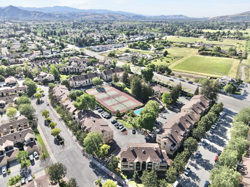 MOVE-IN READY! Spacious 3-bedroom, 2-bath condo in the desirable Morgan Village community. This second-floor corner unit features vaulted ceilings, arched windows, and great natural light throughout. Bright living room with cozy gas fireplace opens to a private balcony. The kitchen offers a large bay window with mountain views. Primary suite includes mirrored double closets, plus in-unit laundry and laminate flooring throughout. Enjoy views of the pool and tennis courts. Includes 2-car tandem garage, 1 assigned space, and ample street parking. Community amenities include pools, tennis courts, and lush landscaping. Conveniently located near Hwy 101, shopping, dining, parks, and hiking trails.