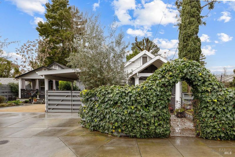 This is a must see. You will love this charming 1940s single-story cottage, located less than a mile from the vibrant Healdsburg Plaza. (Just staged, more photos coming soon.) This inviting 2-bedroom, 2-bath home offers approximately 928 square feet of living space and has been thoughtfully updated over the years. Interior highlights include vaulted ceilings, a cozy fireplace, and an open-concept floor plan that creates a bright and welcoming atmosphere. Love the ivy covered front courtyard, private space with garden bed perfect for your morning coffee. A covered carport provides flexible use as parking or an outdoor dining and entertaining area. The sunny backyard is ideal for gardening and relaxing, offering plenty of space to enjoy the outdoors. The property also features a detached ADU built in 2016, providing approximately 640 square feet of additional living space. The ADU includes an open-concept living room and kitchen with vaulted ceilings, a one-bedroom ensuite, an interior laundry/mudroom, and a convenient half bath. An additional charming detached flex space offers versatile spot perfect for a home office, exercise room, art studio. This is a well-loved property, filled with wonderful memories, now ready for its next owner to add their personal touch. This is a perfect opportunity for owner to live in one and rent the other like the current owner did. It is a versatile property, offering multi-generational living, with a guest house, and has investment potential.