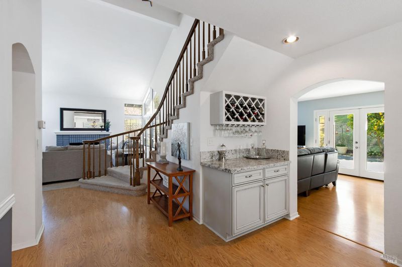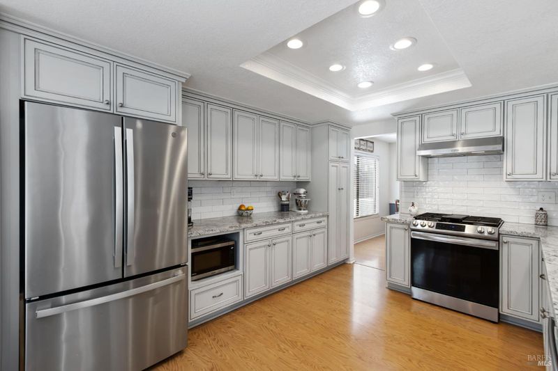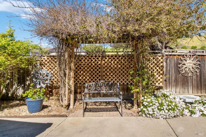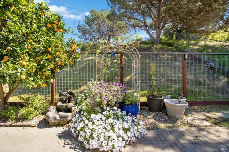 This gorgeous property located in the desirable Marsten Ranch neighborhood. This thoughtfully designed home features 5 bedrooms, 3 bathrooms, and a three-car garage. As you enter, cathedral ceilings and picture windows greet you, providing light-filled living spaces. The home offers two distinct living areas: a cozy main space with a brick fireplace, and an additional room featuring a second fireplace with French doors leading to the backyard. The layout includes a convenient main-level bedroom and full bath, ideal for guests.The updated kitchen showcases beautiful cabinetry and appliances, perfect for entertaining, and all bathrooms have been refreshed with updated fixtures and finishes. The primary suite serves as a true retreat, featuring a spa-like tub and a versatile fifth room suitable for a sitting area or office. Situated on a spacious corner lot with no rear neighbors, the fully landscaped grounds include fruit trees, a charming gazebo, and hillside views. Additional amenities include updated exterior and interior paint, new fencing, and built-in garage cabinets. The property is ideally located near parks and shopping, with convenient access to I-80 and Highway 4.