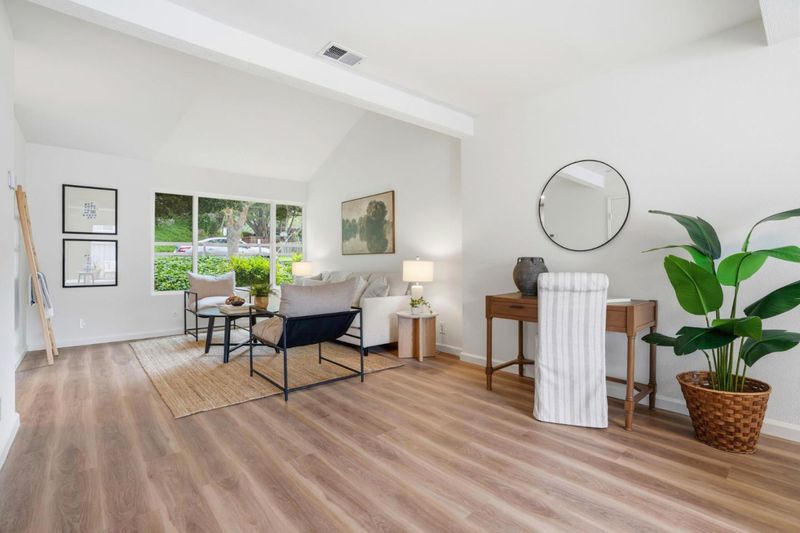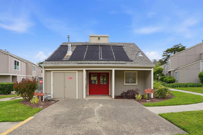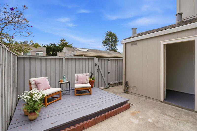 This 2-bedroom, 1.5-baths home is located in Pacifica and offers approximately 1,150 square feet of living space. The kitchen features new quartz countertops, an electric oven range, a dishwasher, garbage disposal, hood over range, and a refrigerator, providing a functional cooking area. Flooring throughout includes carpet and laminate, complemented by double pane windows for added energy efficiency. The bathroom includes a tile shower over tub and a half bath on the ground floor. Heating is provided by central forced air gas, and there is no cooling system. Dining options include a breakfast bar and a dining area. Laundry is conveniently located in the utility room with washer and dryer and loads of storage. The property is part of the Pacifica elementary school district. While there is no garage or family room, the home benefits from high ceilings and access to community pool facilities. Minutes to shops, ocean, beach and San Pedro Park.