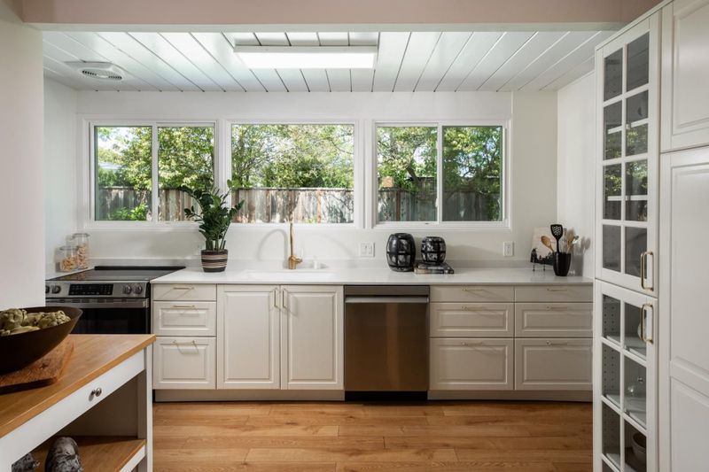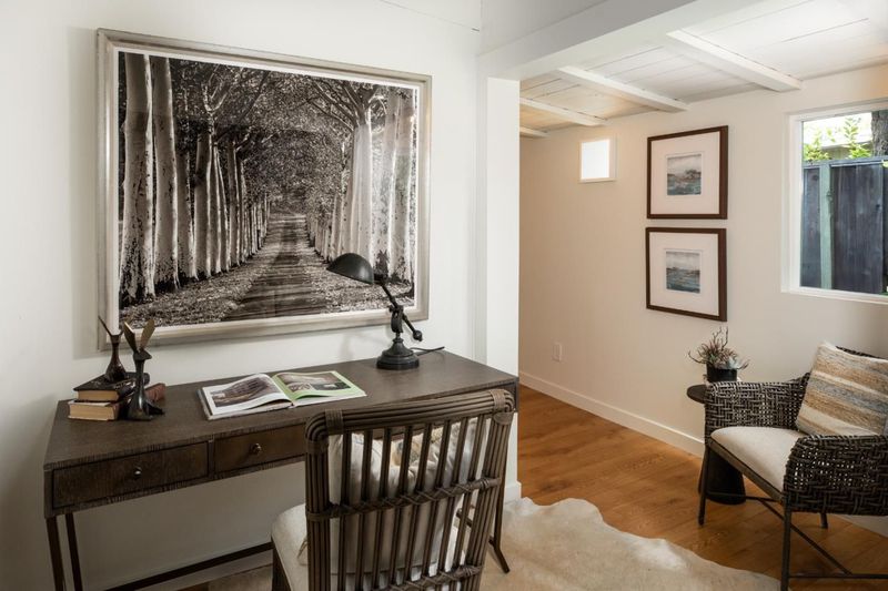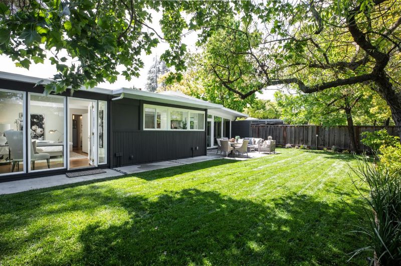 Entire home freshly renovated with 4-bedrooms and 2 office spaces. This flexible floor plan includes a private office, an oversized primary suite with space for a second office or fitness area, and a versatile fourth bedroom perfect for a media room or teen retreat. Located in one of Eichler's rare curvilinear neighborhoods, Fairmeadow is known for its circular streets that promote privacy, community, and traffic calming. Thoughtfully redone in 2019, upgrades include a modern kitchen with custom cabinets, 5 efficient mini splits for effective heating and cooling, renovated bathrooms, new energy efficient windows, and high end flooring. Designer paint tones, abundant storage, the office, and a locking outdoor shed enhance both function and style. The light-filled interior opens to a serene backyard with lush lawn, mature trees, fruit plantings, and seasonal blooms. Its truly a private outdoor sanctuary. Enjoy a highly walkable location near top-rated schools including Fairmeadow Elementary School, Hoover Elementary and Jane Lathrop Stanford (JLS) Middle School, plus super close proximity to Mitchell Park, local dining including Tofu House, shopping, and biking distance to Gunn High School. Move-in ready and designed for modern living with timeless Eichler style.