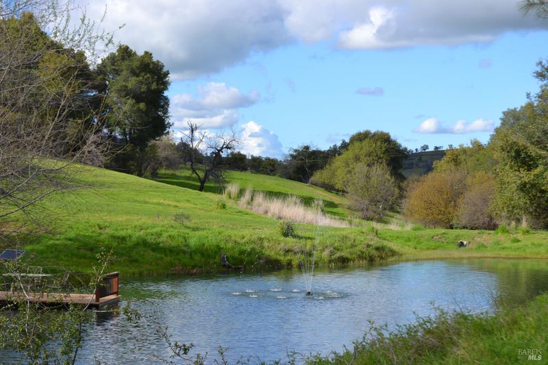 Rare opportunity to own nearly 30 acres of stunning country property where thoughtful craftsmanship meets exceptional outdoor living. This 2,416 sq ft Craftsman-style home opens to sweeping wraparound porches with new Trex decking an ideal perch to take in peaceful, private views across the land. Two ponds anchor the outdoor experience, including a remarkable swimming pond with solar-powered fountain and an impressive 20-ft center depth. A robust water system supports the property with two solar-pumped wells, 2,000-gallon storage, and well-fed irrigation all complemented by RNVWD water service to the home. Inside, timeless details shine: tongue-and-groove hardwood floors, custom wainscoting and window trim, and a brick fireplace with potbelly stove in the living room. Both bedrooms feature fireplaces with custom mantels, while large Anderson double-hung and picture windows plus gorgeous French doors fill every room with natural light. The versatile recreation room with polished concrete floors and a roll-up screened door is ready for entertaining or hobbies. The updated kitchen features picture windows surrounded by a custom designed brick design, quartz counters, white cabinets, and stainless steel appliances. A massive 30x40 insulated shop features two 14-ft roll-up doors, 16-ft ceilings, and 50-amp service. A 10x20 RV plus an 8x10 shed offer year-round storage. Established fruit trees pear, apple, plum, apricot, peach, citrus, lime, and pomegranate along with raspberries and artichokes thrive in the deer fenced garden. Top it all off with a private paved driveway, entry gate, and paid for solar for both the house and the shop.