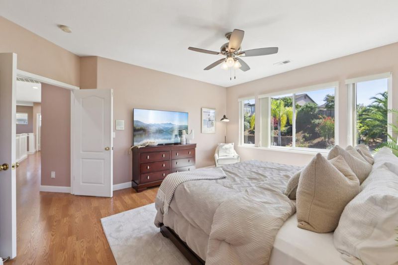 Welcome to 2696 Sequoia Creek Dr in the prestigious Greystone Estates. This northeast-facing 5 bed, 3 bath home sits on an expansive 14,000+ sq ft cul-de-sac lot, offering exceptional space, privacy, & comfort. Featuring soaring vaulted ceilings & abundant natural light, the open-concept layout is ideal for both everyday living & entertaining. The chefs kitchen is equipped w/high-end cabinetry, stainless steel appliances, a premium Dynasty range, & a large center island. A desirable downstairs bedroom & full bath provide flexibility for guests or multi-generational living. Upstairs, the spacious primary suite offers a relaxing retreat w/a spa-like bath & walk-in closet. The oversized backyard is a private oasis w/mature fruit trees & ample space for a potential ADU, sports court, or resort-style expansion. Additional features include owned Tesla solar, tankless water heater, central vacuum, a finished 3-car garage w/epoxy floors & built-in cabinetry. The tandem 3rd-car garage presents a unique opportunity & can be easily converted into an additional bedroom or expand the existing downstairs bedroom into a full ensuite. Conveniently located near top-rated schools J.F. Smith Elementary, Chaboya Middle, & Silver Creek High, with easy access to parks, shopping, & major commute routes