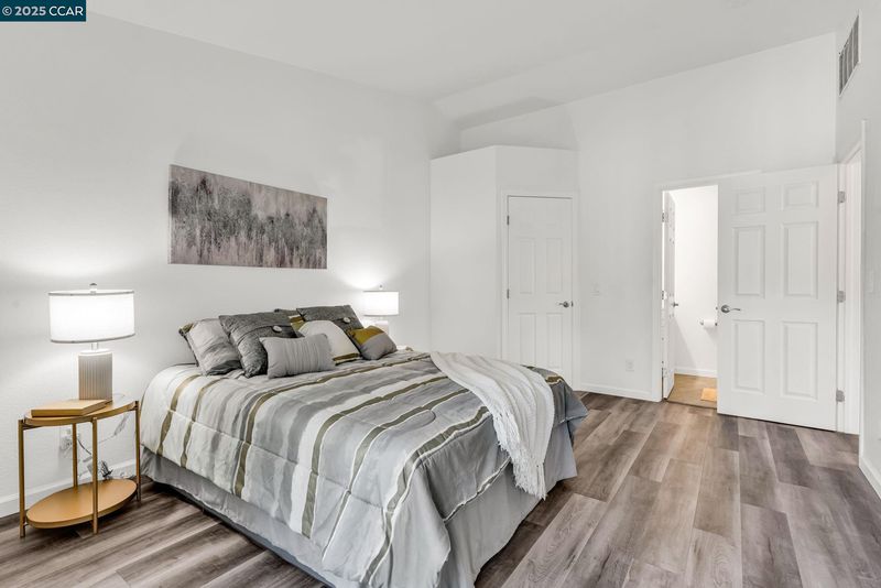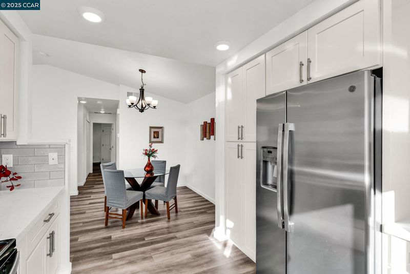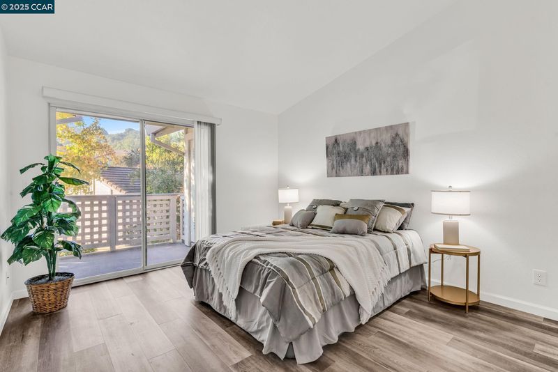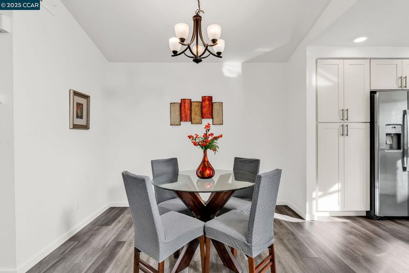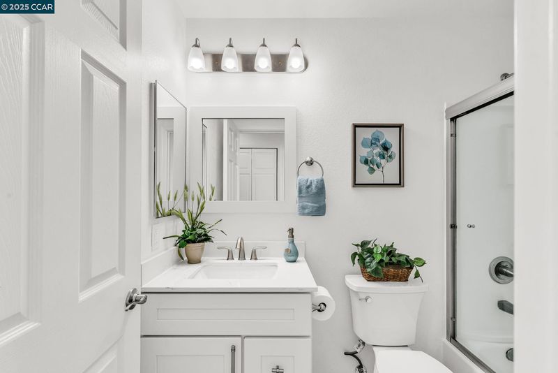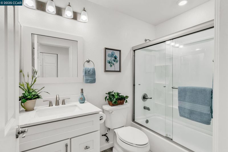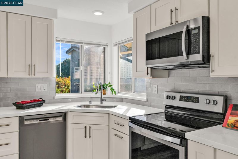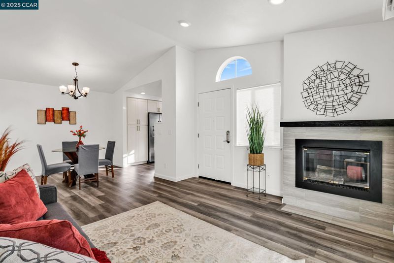 Gorgeous, move-in ready 2 BR/2 BA upstairs unit that is bright & airy. Fully remodeled in 2019 w/everything updated—new paint, vinyl laminate flooring, kitchen w/quartz counter, soft-close cabinets & stainless steel appliances, recessed lights, both bathrooms--even new doors. Enjoy a living rm that boasts a cozy gas fireplace for cold days/nights. Two private patios for morning coffee or evening dinners. Spacious primary bedroom en suite w/patio access, walk-in closet, bathroom with modern shower stall & dual sinks. Interior laundry closet—washer & dryer are included. Outdoor storage closet, detached one-car garage. Water heater replaced in 2025. You’ll love coming home to this secluded neighborhood nestled in the tranquil hills of Hercules. A community pool & clubhouse are available for your enjoyment during the warm months. HOA includes water, trash and exterior maintenance. Close to elementary, middle and high schools, parks and walking trails. So much offered at this affordable price! Must see!