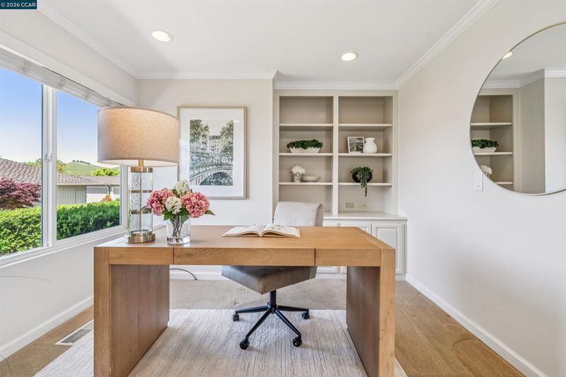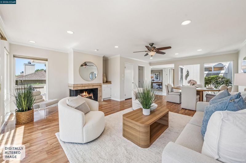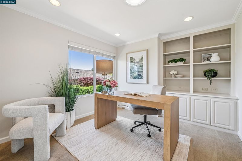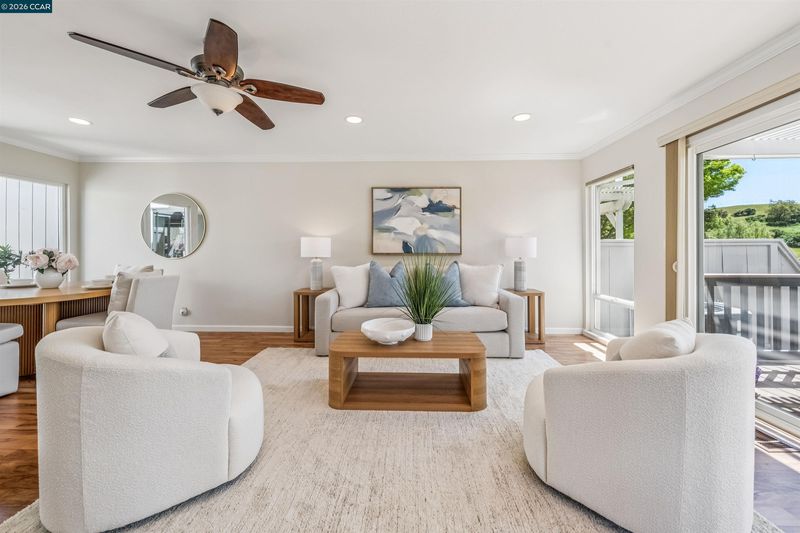 Perched on one of the quietest and most sought-after streets in the heart of Crow Canyon Country Club, this lovingly maintained townhome on Myrtle Beach Lane offers the perfect blend of comfort and resort-style living. Step inside to discover 1,553 square feet of thoughtfully designed space, featuring 2 generously sized bedrooms, a versatile office, 2 full bathrooms, rich hardwood floors, and a sun-filled atrium that bathes the home in natural light. The living room charms with built-in bookshelves and a wood-burning fireplace, while sliding doors open directly onto the fairway, seamlessly connecting indoor living to breathtaking panoramic views of hole 3, rolling hills, and wide-open skies. The eat-in kitchen extends the living experience outdoors through its own sliding doors to a lovely garden patio — ideal for morning coffee, al fresco dining, or golden-hour entertaining on the eco-friendly composite deck. As a resident, you'll enjoy exclusive access to the Bay Club Crow Canyon Country Club, complete with a manicured 18-hole golf course, magnificent clubhouse with bar and grill, formal dining, gym, tennis, pickleball, a heated junior Olympic pool, and luxurious spa facilities — all secured behind a 24-hour manned guard gate with roving privacy patrols.