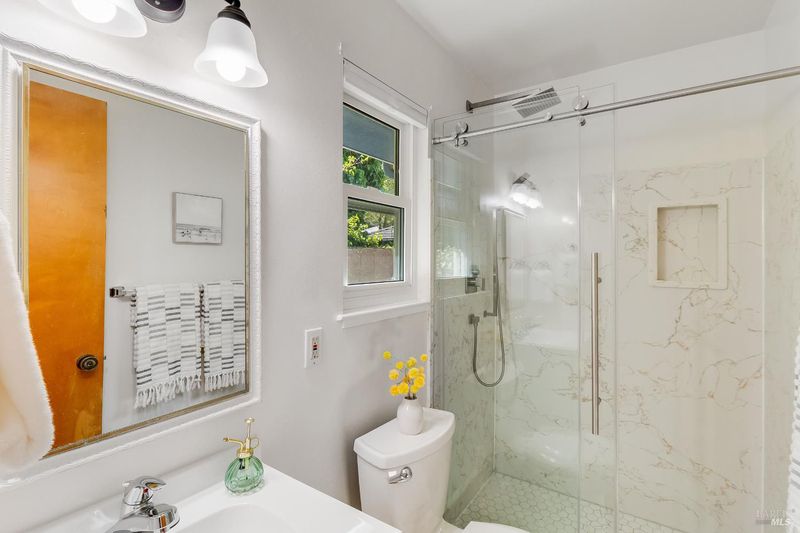 - Multiple Shower Heads, Shower Stall(s), Tile, Window