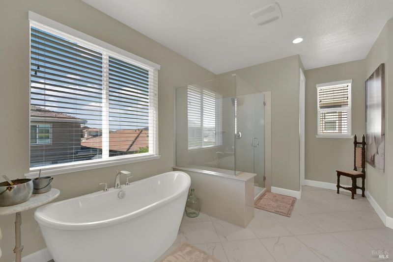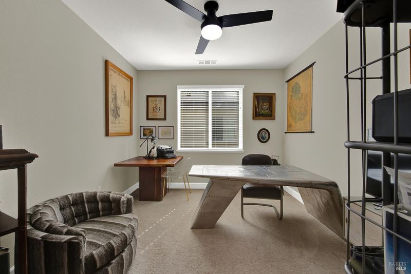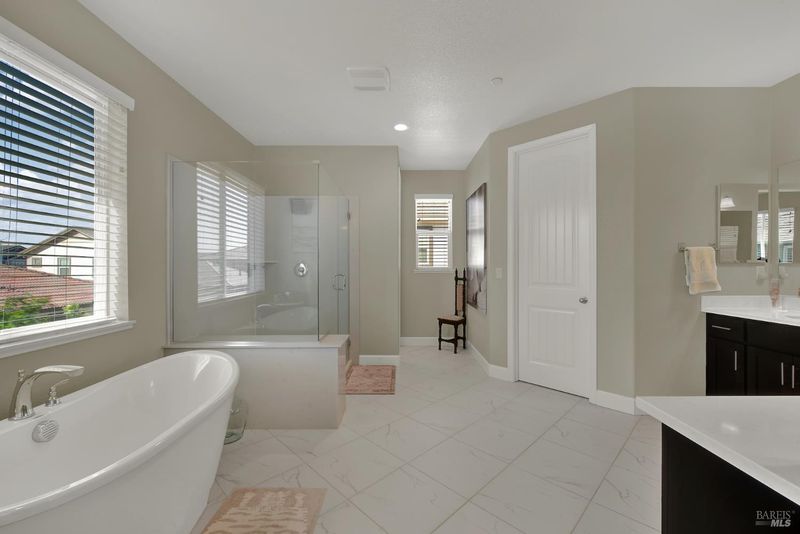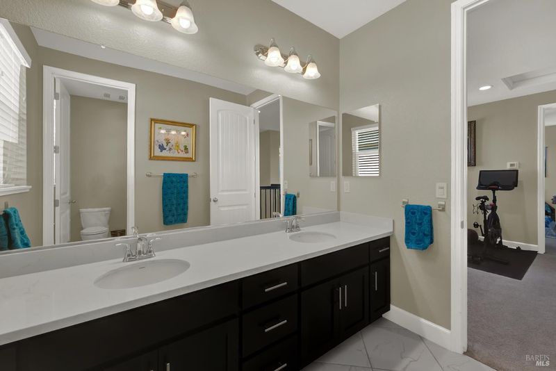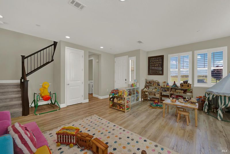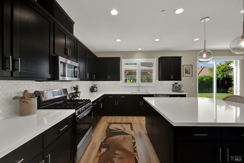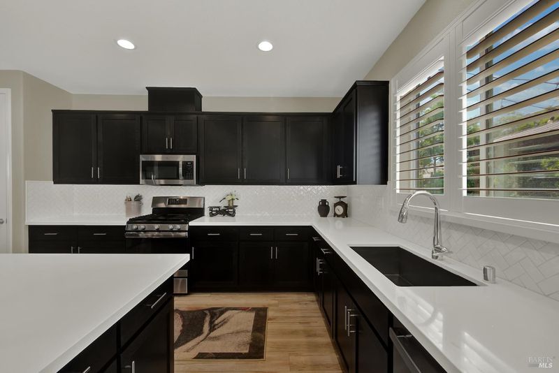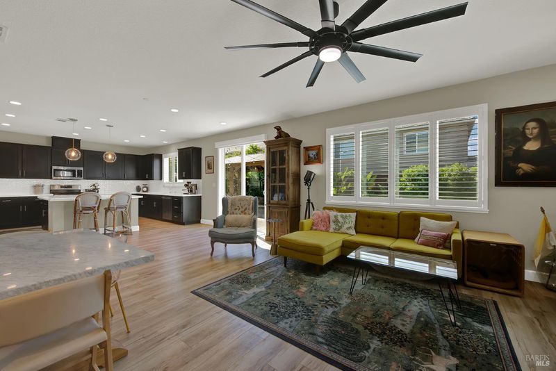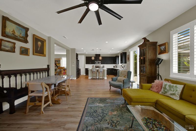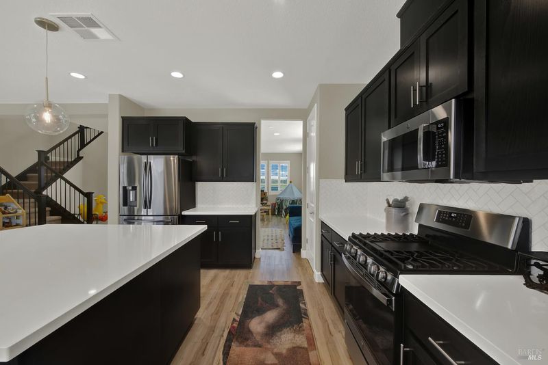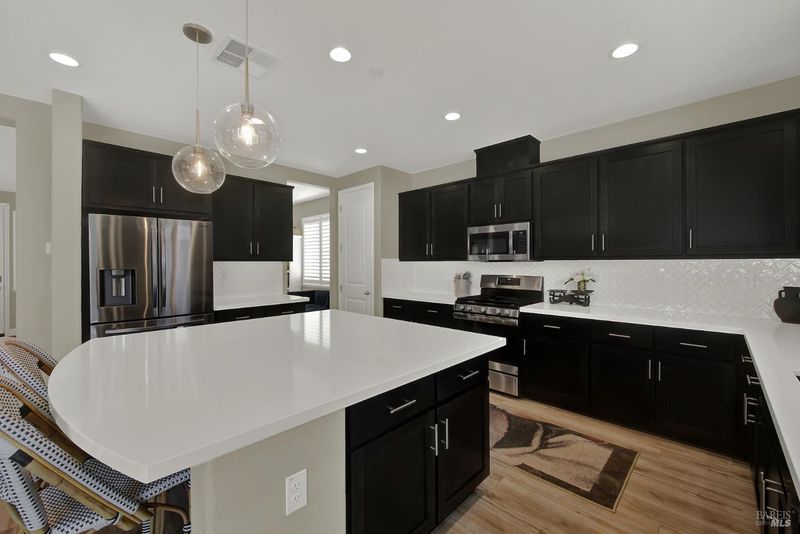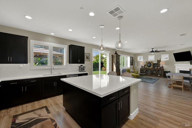 Rare opportunity! Beautiful Vacaville home with a 2.75% VA assumable loan and stylish modern upgrades throughout. Gorgeous luxury vinyl flooring spans the downstairs, with separate living and family rooms and modern recessed lighting. The stunning kitchen features quartz countertops, a large island with pendant lighting, dark cabinetry, gas stove, and stainless steel appliances including built-in microwave, dishwasher, and refrigerator. Cozy family room with fireplace and ceiling fan. Convenient full bedroom and full bathroom downstairs. Inside laundry room with extra storage. Garage features epoxy flooring, overhead storage, and tankless water heater. Upstairs offers a loft with built-in cabinets and a bonus room ideal for an office. Spacious primary suite with tray ceiling, dual sinks, soaking tub, large shower, and walk-in closet. Enjoy the backyard gazebo, perfect for relaxing or entertaining. Close to freeway access and Kaiser Hospital.