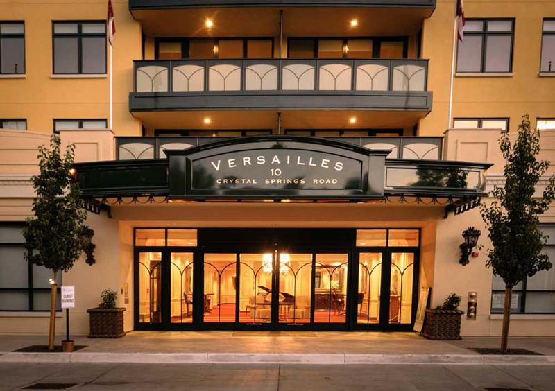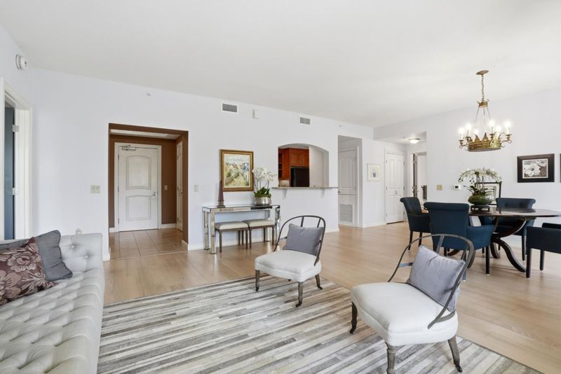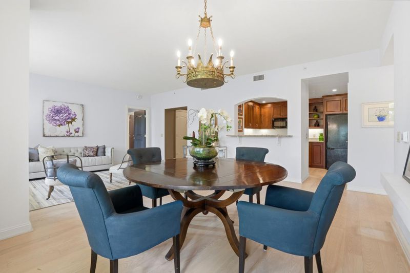 Step into this beautifully designed condominium featuring high-end finishes and thoughtful details throughout. Custom window treatments with integrated blinds, elegant hardwood floors, rich cherry cabinetry, granite kitchen countertops, and marble countertops in both bathrooms create a warm and sophisticated ambiance. Spacious closets in both the entry and primary bedroom provide exceptional storage, while the in-unit washer and dryer add everyday convenience. Parking and additional storage are included. Located at Versailles, a luxury 55+ community, residents enjoy gourmet meals, housekeeping, maintenance services, a heated indoor pool and spa, fitness center, activity classes, and numerous on-site amenities. Just steps from downtown San Mateo, this home offers an exceptional blend of elegance, comfort, and community living.