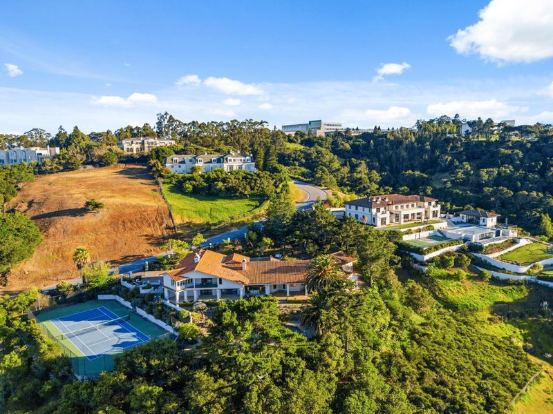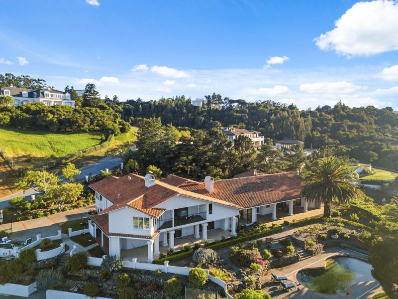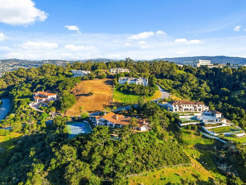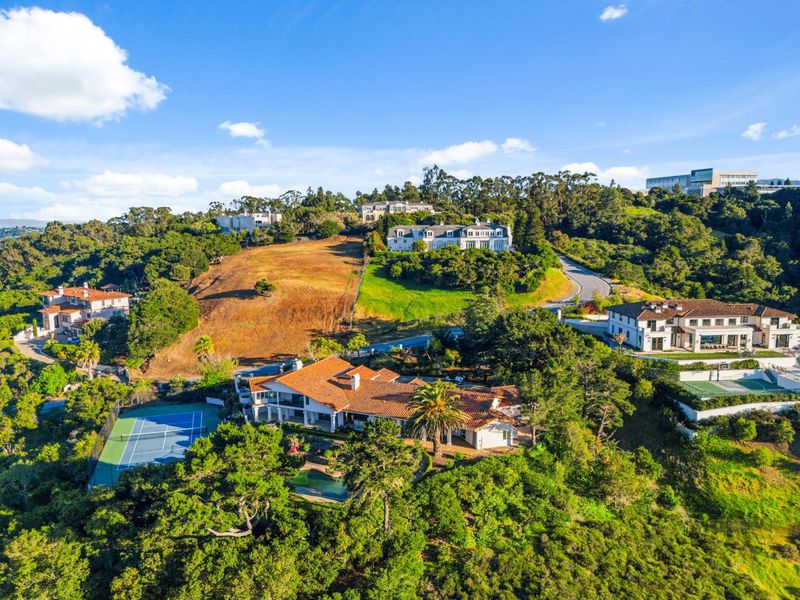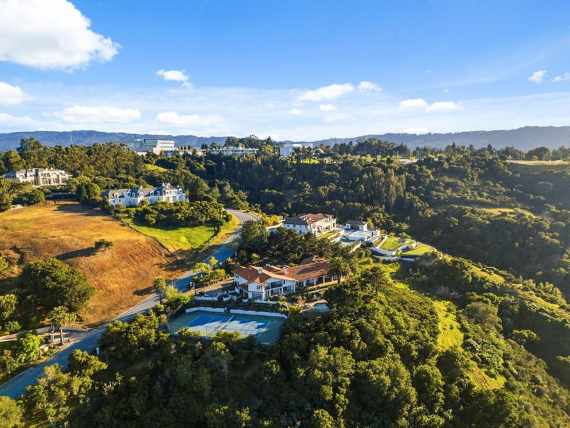 Panoramic Bay views take center stage in this extraordinary estate, w/ sweeping vistas from the SF skyline to the San Mateo Bridge & across the East Bay hills. Set on ~3.4 acres in prestigious Tobin Clark Estate, this property offers rare privacy, scale & presence. Built in 1981 by the areas original developer as his personal residence, it sits on one of the communitys most desirable sites. Spanning ~7,000 sq.ft., the home features grand living spaces, soaring ceilings & expansive windows framing the views throughout. A dramatic foyer w/ curved staircase leads to elegant living & entertaining areas. Spacious family rm w/ bar opens seamlessly to the grounds, while the kitchen w/ breakfast area captures natural light & scenic outlooks. Multiple bedroom suites + dedicated office, incl. a luxurious primary suite w/ fireplace, dual baths, dual walk-in closets & private view balcony. Resort-style grounds feature pool, full-size tennis court, lawns & covered patios. Gated circular drive w/ porte cochère leads to a 3-car garage, completing this rare Hillsborough legacy estate near Silicon Valley & SF.