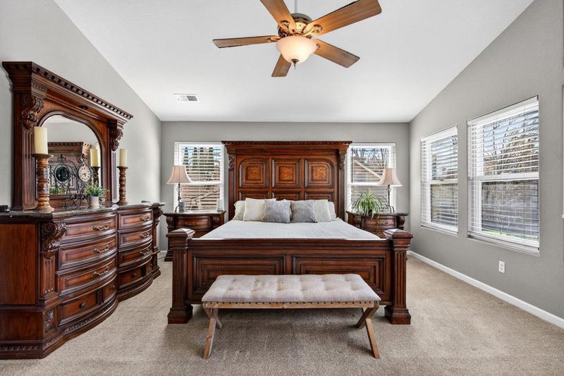 Discover unparalleled comfort in this spacious 3,250 sq ft residence, ideally situated on a tranquil cul-de-sac. This property boasts a generous 13,000+ sq ft lot, offering privacy and ample outdoor living space. The welcoming entry leads to an open-concept living area, seamlessly connecting to a modern kitchen, a separate family room, and a versatile formal dining/living space. Five bedrooms provide abundant accommodation, including a convenient downstairs guest suite with a full private bath, plus an additional guest half-bath on the main level. The tastefully updated master suite is a true sanctuary, featuring ample space for a king-size bed, a cozy fireplace, a large walk-in closet, dual sinks, and a separate tub and shower. Outside, a refreshing pool awaits, complemented by multiple seating areas and expansive yard space perfect for entertaining. An oversized driveway ensures ample parking for guests. This home is an entertainer's dream and a perfect family retreat.
