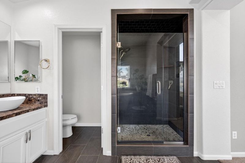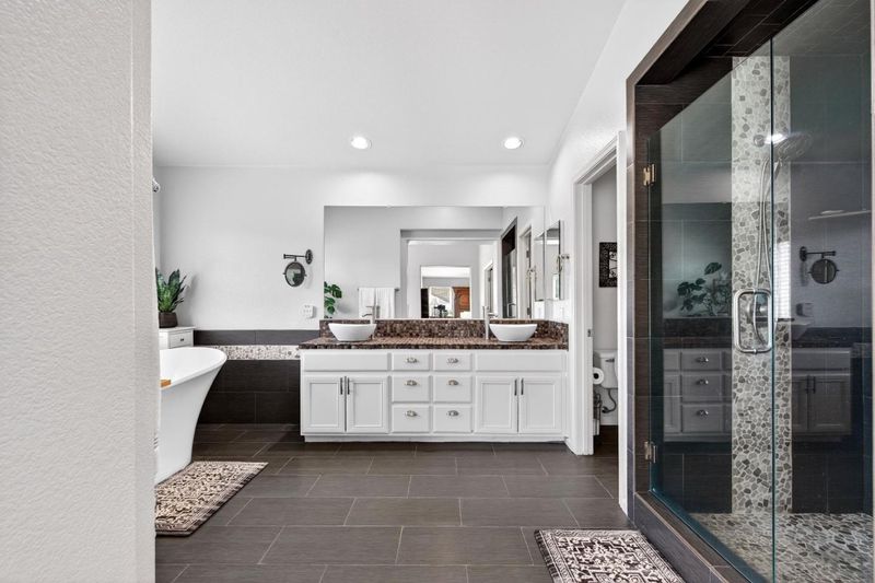 - Double Sinks, Full on Ground Floor, Primary - Oversized Tub, Primary - Stall Shower(s), Shower and Tub, Tile, Updated Bath