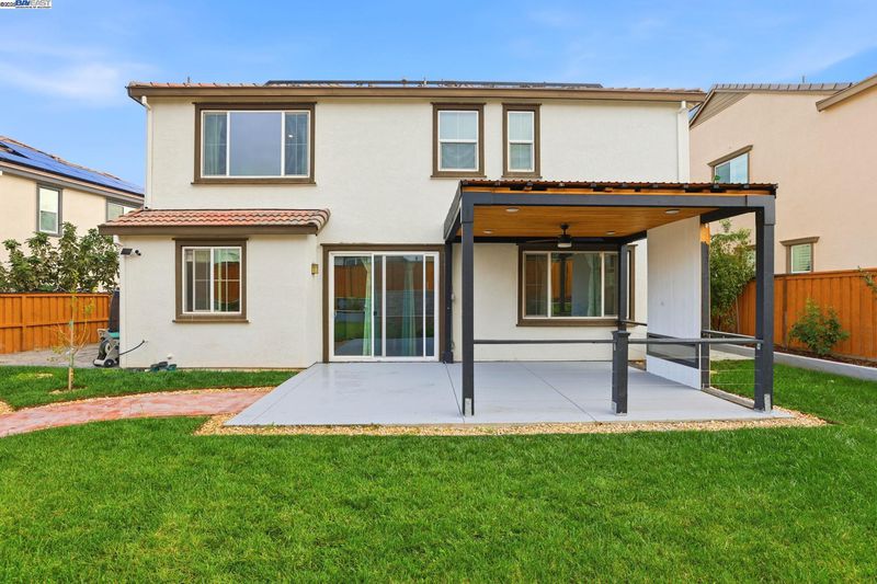 Beautiful Solar-Equipped 4-Bedroom Home with Exceptional Backyard Retreat Welcome to this beautiful and uniquely designed two-story home featuring 4 bedrooms, 3 full bathrooms, and a 2-car garage. As you enter, you're greeted by a high-ceiling foyer and a stunning view of the custom waterfall feature, setting the tone for the elegance throughout the home. The main level includes a spacious downstairs bedroom and a full bathroom, perfect for guests or multigenerational living. The grand kitchen, stretching over 15 feet, offers abundant counter space, a center island, and a bright window overlooking the serene backyard. Upstairs, the expansive master suite invites relaxation with a large bathroom featuring a dual-sink vanity, separate shower, comfortable soaking tub, and an oversized walk-in closet. One of the standout features of this home is its eccentric, entertainer’s backyard. Multiple seating zones include a massive sunken seating area ideal for hosting gatherings, and a covered patio complete with a TV and fireplace, perfect for enjoying cozy evenings year-round. The vibrant community provides a lifestyle of comfort and fun with two swimming pools, five play areas, a basketball court, a sand pit and miles of walking trails.