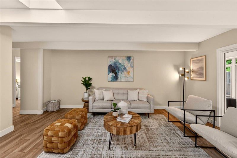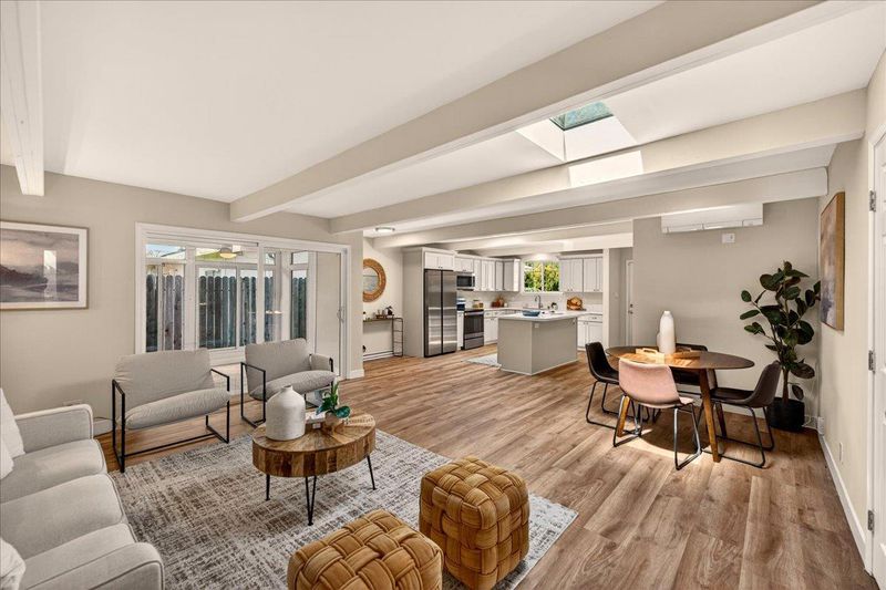 Welcome to this beautifully updated Milpitas home, designed for comfortable everyday living with a strong indoor outdoor connection. A bright sunroom offers flexible additional living space, filled with natural light and seamlessly extending into the backyard. Outside, a thoughtfully designed setting features a pergola, paved patio, raised planter beds, and a variety of mature fruit trees, creating a private space ideal for both relaxing and entertaining. Inside, exposed beams bring warmth and character, while the updated kitchen offers quartz countertops, stainless steel appliances, and a functional layout suited for daily use. Comfort is enhanced with four split system heating and cooling units throughout the living room and bedrooms, providing efficient and customizable climate control. Recent improvements include new waterproof flooring, fresh interior and exterior paint, updated bathroom vanities, modern light fixtures, and upgraded hardware, giving the home a clean, move-in ready feel. Situated in a welcoming neighborhood with an elementary school just around the corner and convenient access to top rated Milpitas schools, major tech employers, parks, shopping, and dining, this home offers comfort, convenience, and community in one of Milpitas most desirable locations.