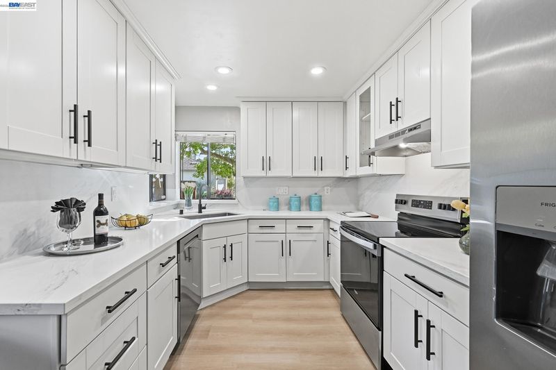 Beautifully updated home offering bright and open layout with soaring ceiling.Formal living and dining rooms and inviting family room opens directly to backyard. The updated kitchen features quartz countertop and backsplash, new appliances, and contemporary finishes. New luxury vinyl flooring thruout, providing both style and durability. Master bedroom suite includes a new spa-inspired walk in shower, double vanity and double walk in closets. Updated secondary bathrooms with quartz counter and modern finishes. Major system upgrades include copper plumbing, newer furnace and central A/C, newer roof, providing comfort and peace of mind. This home blends style and practicality in desirable setting and conveniently located near BART, freeway access, shopping, and schools, and parks. Low HOA dues include community pool.