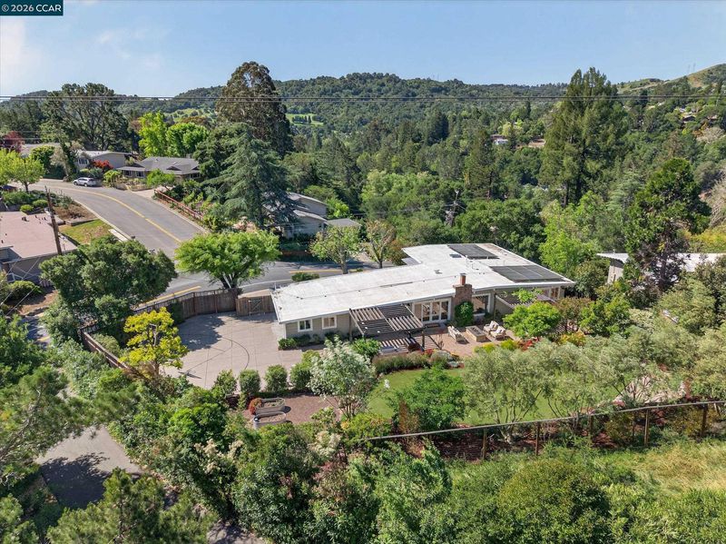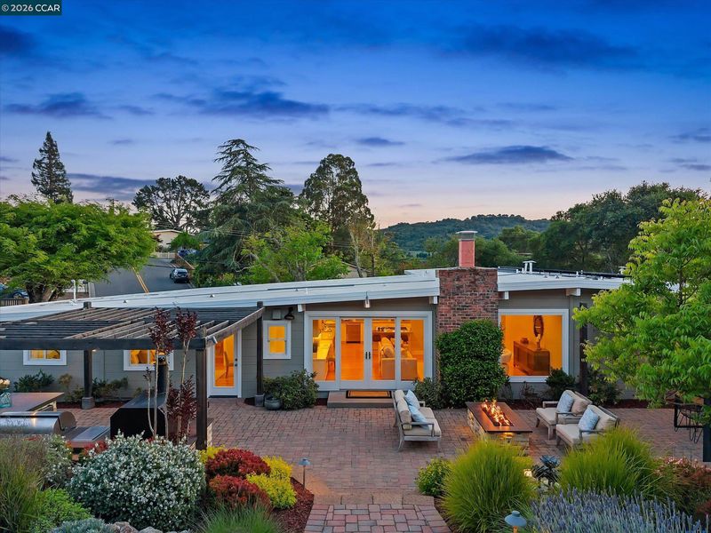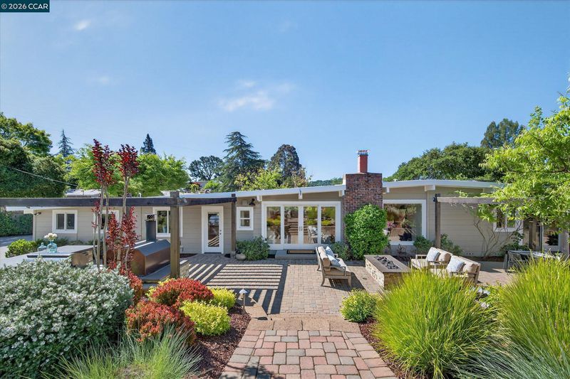 Set back from Ivy Drive, this single-level mid-century modern home offers style, comfort, and a prime Orinda location moments from Del Rey Elementary, Orinda Intermediate School and Miramonte High School. Featuring 4 bedrooms, 2 full and 2 half baths, and 2,348 sq ft. Hickory floors span the main living areas and one bedroom, with new carpet in the others. The spacious primary suite includes a walk-in closet and spa-like bath with a Victoria + Albert soaking tub, dual-head shower, heated tile floors, and double vanity. California Closets in three bedrooms; bathrooms feature Caesarstone counters. Family room with stunning fireplace, built-ins, and hardwired Bose soundbar. Kitchen offers Caesarstone counters, island seating, stainless steel appliances including French door refrigerator, double ovens, new gas cooktop, wine fridge, and pet station. Backyard by Garden Lights features sport court, raised vegetable beds, and outdoor kitchen with Neolith counters, wood burning pizza oven, BBQ, fridge, fire pit, and space for dining under a pergola. Owned solar and foam roof for energy efficiency. A must see!
