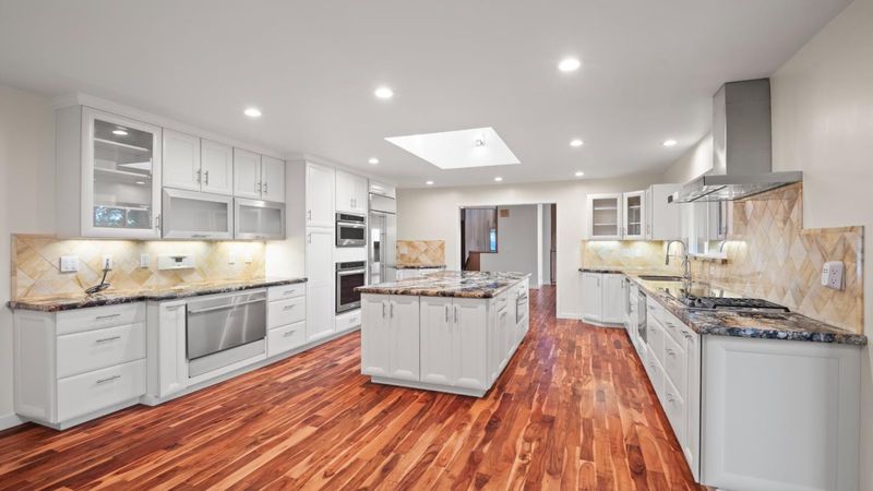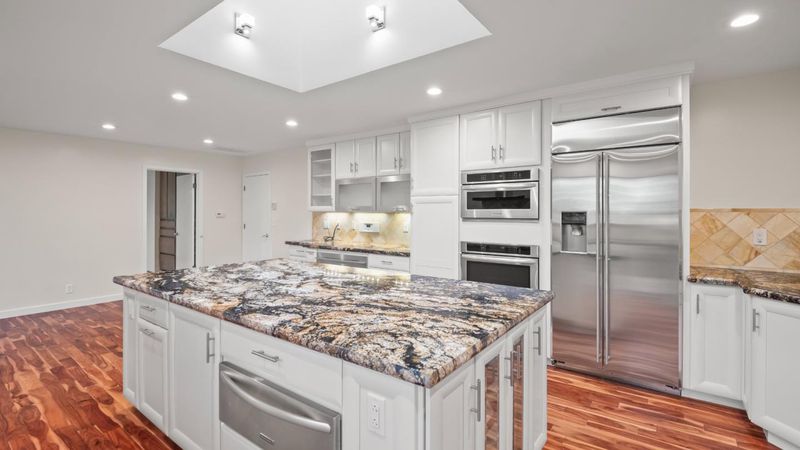 - Cooktop - Electric, Cooktop - Gas, Countertop - Quartz, Dishwasher, Exhaust Fan, Garbage Disposal, Island, Microwave, Oven - Built-In, Refrigerator, Skylight