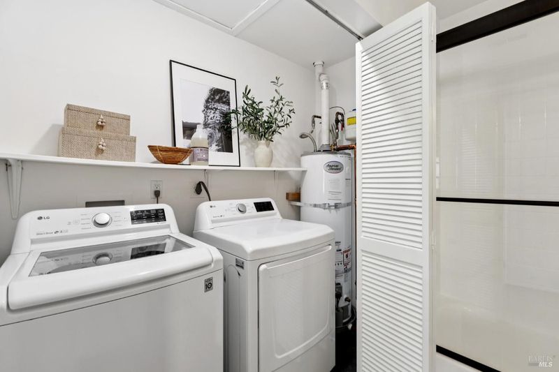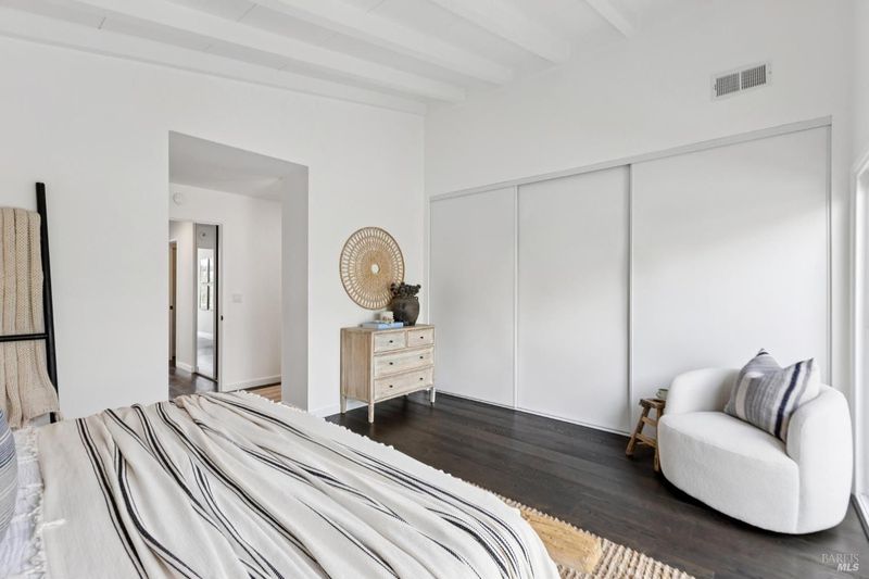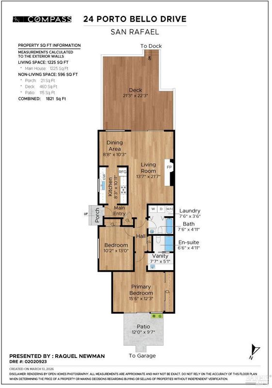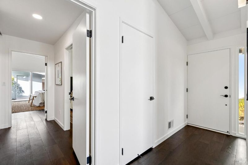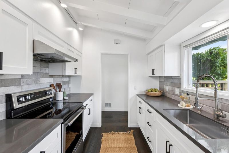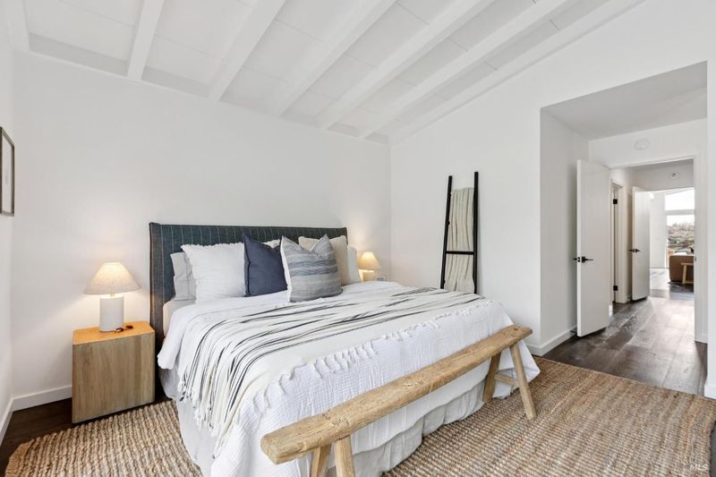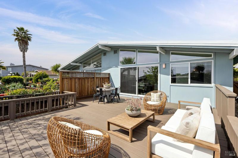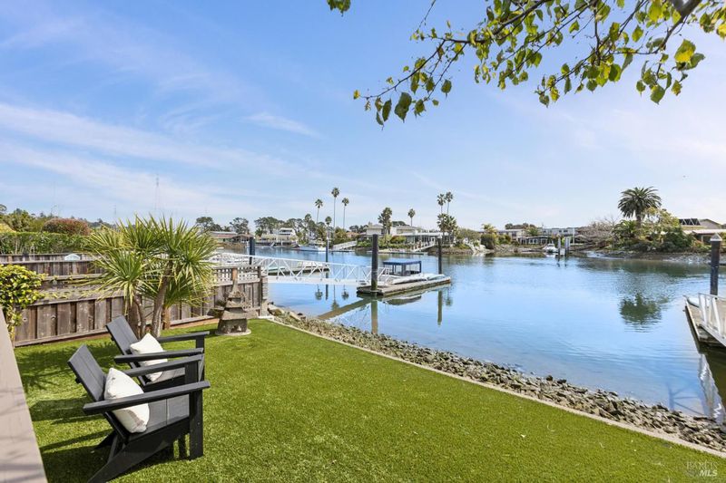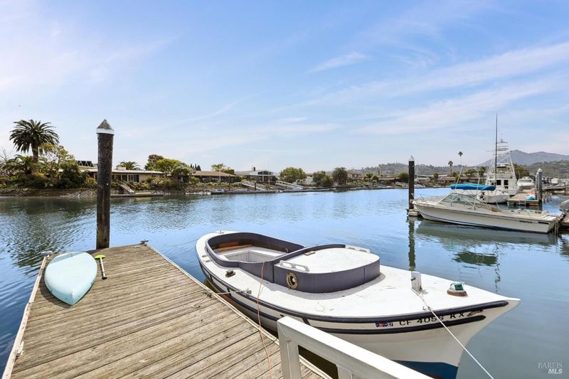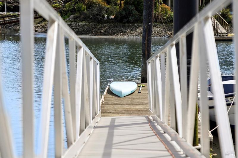 Set along the water's edge of San Rafael Creek within the desirable Porto Bello community, this single-level residence offers exceptional bay access, water frontage, & a privately shared rare deep-water dock just beyond the expansive deck. Designed to capture its surroundings, the home is filled with natural light, with windows & sliding glass doors framing ever-changing marina views while creating a seamless connection to the outdoors. The main living spaces feature an open, flowing floor plan beneath vaulted ceilings, with wood floors & an inviting fireplace anchoring the living area. Sliding doors extend the living & dining areas onto a generous waterside deck and lower turfed lawn, creating a seamless indoor/outdoor lifestyle ideal for relaxed gatherings, al fresco dining, or enjoying the rhythm of boats passing by. The chic contemporary kitchen blends crisp white cabinetry with grey-toned tile, charcoal-hued counters, & black hardware. A striking industrial-style faucet & stainless sink pair style with functionality. Both bedrooms offer privacy & comfort. The primary suite serves as a calm retreat with an en-suite bath illuminated by a skylight, updated cabinetry, chic black hardware & fixtures, & a sizable closet. Sliding doors open to a secluded, fully enclosed garden patio offering a private outdoor retreat. A second bedroom & full bathroom along the hallway provide flexibility for guests, work-from-home use, or additional living space. Practical amenities include an in-home laundry closet with washer & dryer, ample storage, a 1-car garage, & an additional parking space - all with easy level access. Residents of Porto Bello enjoy use of a community pool & dock, & immediate water access for kayaking, paddle-boarding, or spontaneous bay outings. The location is near Loch Lomond Marina & promenade, Andy's Market, Whole Foods, & Trader Joe's, with downtown San Rafael's shops & dining close by. Nearby recreation includes China Camp trails, shoreline paths, & Peacock Gap Golf Club, with convenient access to Highway 101. A rare opportunity to enjoy waterfront living defined by ease, connection to nature, & everyday convenience where the water is not just a view, but part of daily life.