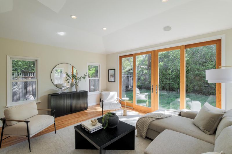 Tucked away at the end of a private lane in Palo Alto's Community Center neighborhood, this home offers a great mix of privacy, comfort, and easy living. Surrounded by mature trees and beautiful landscaping, it feels peaceful and tucked away from it all. Inside, the open layout is filled with natural light, beautiful hardwood floors and updated lighting throughout. The living room is anchored by a striking stone fireplace and flows seamlessly into a well-appointed kitchen with stainless steel appliances and soapstone countertops, perfect for everyday living and entertaining. Just off the living room, a charming patio creates an easy indoor-outdoor connection. The primary suite is a relaxing retreat, featuring a generous walk-in closet and a spa-like bathroom. Nearby, the family room stands out with its high ceilings and sliding glass doors that open to the spacious backyard. Out back, you'll find a sunny, private yard with a lush lawn and patio, ideal for relaxing, hosting, or just enjoying the Palo Alto weather. All of this just minutes from the shops and restaurants on University Avenue and top-rated schools. With its central location, tree-lined streets and abundance of amenities, the Community Center neighborhood remains one of Palo Alto's most desirable places to call home.