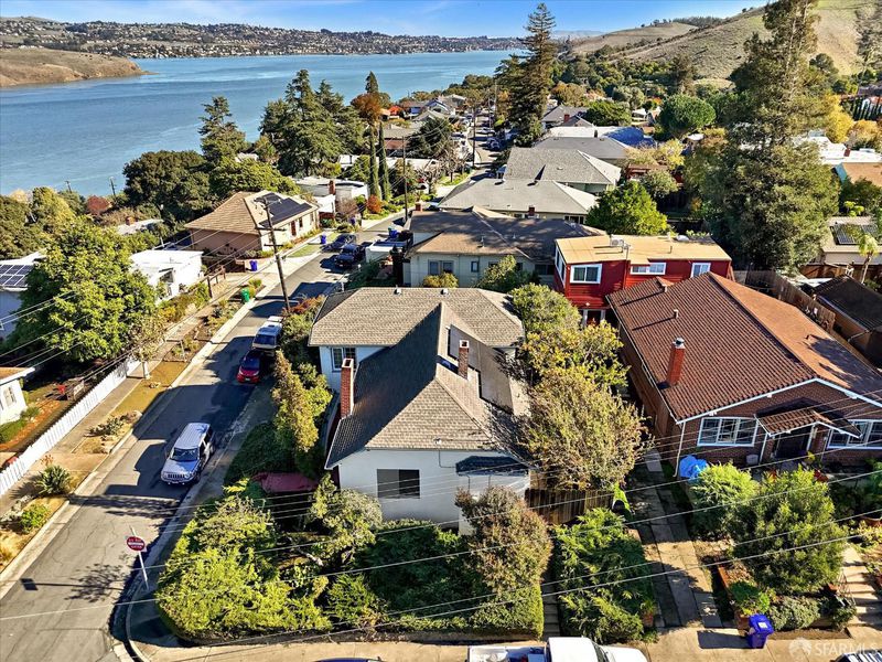 A rare Crockett gem! Charming as a button - first time to the market in 75 years. This 1928 Craftsman offers timeless architecture, a coveted corner-lot setting, and incredible potential for those seeking charm, light, and room to grow. Step from the large front patio into a formal entry which opens into an expansive living room featuring a wood-burning fireplace, tall windows, and beautiful natural light. The formal dining off the living room comfortably accommodates a large table for hosting fun filled events and flows into the cozy vintage kitchen with cheerful breakfast room. The upper level features two large bedrooms (one with water views) with generous closet space and an original bathroom that remains true to its era. Step outside to the newer back deck where you'll enjoy additional water views and direct access to the spacious non-enclosed yard home to multiple mature fruit trees including 2 avocados, an almond, a fig, 2 orange trees, and an apricot. The lower level of this great home offers exciting expansion potential with a large laundry/workroom ideal for conversion into a third bedroom en suite. Additional basement/utility storage and a single-car garage complete the home. Bring your vision and craftsmanship to this beloved property and create something truly special. Estate Sale.