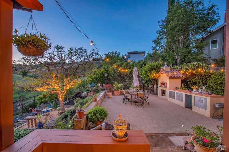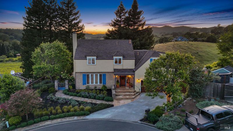 Tucked away on a peaceful cul-de-sac in Browns Valley's coveted west hills, this elegant French Country-inspired residence offers a rare blend of warmth, sophistication, and true Wine Country living! Lovingly customized over the years, never a flip, this home exudes character and craftsmanship, far from anything cookie-cutter. Step through the foyer into a gracious Living Room anchored by a beautifully rebuilt stone Fireplace, creating an inviting space that flows effortlessly into the formal Dining Room, ideal for intimate gatherings or lively celebrations. At the heart of the home, the thoughtfully designed Chef's Kitchen blends style and function with a generous butcher block island, quartz countertops, abundant cabinetry, and top-tier appliances including a Viking gas cooktop, double ovens, warming drawer, and professional-style refrigerator. The Kitchen opens seamlessly to the Family Room and adjacent temp-controlled wine cellar, enhancing the home's natural flow for everyday living and entertaining. Designed to embrace indoor-outdoor living, glass doors lead to approximately 1,500 SF of redwood decking with sweeping hillside and vineyard views stretching toward the Mayacamas foothills! Multiple outdoor entertaining spaces invite you to host unforgettable gatherings, complete with two fully equipped cooking areas: one featuring a natural gas grill, burner, and sink, and the other a generous island paired with a wood-fired pizza oven perfect for everything from artisan pizzas to slow-roasted feasts. The outdoor experience is nothing short of enchanting! Terraced gardens filled with vibrant flowers, raised vegetable beds, and a bounty of fruit trees: apples, pears, peaches, plums, figs, and persimmons, create a true farm-to-table lifestyle. Bees, butterflies, birds, and passing wildlife add to the serene private setting, offering a sense of retreat just moments from town. Inside, the four spacious bedrooms provide comfort and flexibility, including a luxurious Primary suite with ample room for a sitting area or private fitness space. Three beautifully appointed full bathrooms and an expansive laundry room with abundant storage. This is more than a home, it's a lifestyle. Private, peaceful, and thoughtfully designed for both relaxation and entertaining, it offers an exceptional opportunity to experience the very best of refined wine country living!