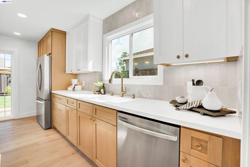 Welcome to this fully remodeled 3 bed, 2 bath single-story home offering 1,282 sqft of thoughtfully updated living space in Livermore’s desirable Northside neighborhood. Set within a quiet community, the location offers convenient access to Highway 84, downtown Livermore, and nearby May Nissen Park. From the moment you arrive, the curb appeal stands out with refreshed exterior paint, new roof, and low-maintenance landscaping designed for easy upkeep. Inside, the home opens to a bright, modern interior featuring smooth wall texture, wide-plank SPC flooring, and energy-efficient recessed lighting throughout. The living space is centered around an electric fireplace insert with heater, creating a comfortable setting for everyday living. The kitchen has been completely redesigned with new cabinetry, quartz countertops, tile backsplash, and a full suite of appliances, offering a clean and functional space for cooking and gathering. Both bathrooms have been fully remodeled with updated vanities, tile, fixtures, and finishes, including a walk-in shower with glass enclosure in the primary suite. Beyond the finishes, the home includes major system upgrades such as new energy-efficient windows and sliding glass door, a new HVAC system (furnace and A/C), and an updated electrical sub-panel with GFCI and AFCI protection. The finished garage features epoxy flooring and laundry hookups, adding both function and flexibility. The backyard has been refreshed with new sod, irrigation on an automatic timer, and updated fencing, creating a simple and usable outdoor space. With extensive high-end updates throughout and a convenient Livermore location, this home is move-in ready and designed for everyday comfort.