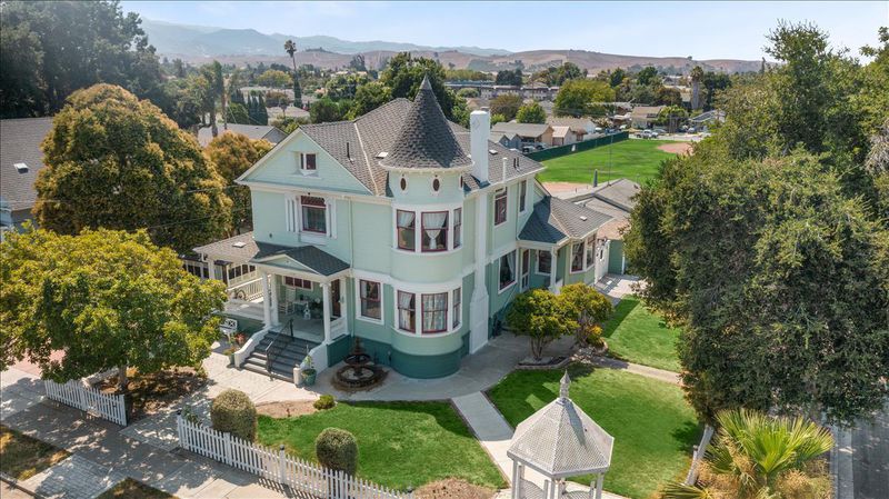 Step back in time and discover the iconic former home of the Joshua Inn Bed and Breakfast, a grand Queen Anne Victorian in the heart of Hollisters historic 'Old Town.' Commanding a premier corner lot directly across from Dunne Park, this isnt just a homeits a legacy. Built in 1902, this remarkable property exudes character, featuring a classic wrap-around front porch, soaring ceilings, and original woodwork and mouldings that reflect its rich heritage. With 5 bedrooms and 6 bathrooms, the home offers an impressive scale while still feeling warm and invitingideal for a large or multi-generational household. The property is located within the 'Old Town Medium Density' (OTMD) residential zone, offering exciting possibilities. Whether envisioned as a distinguished private residence, a boutique hospitality venture, or a project that takes advantage of the flexible zoning, the potential here is truly exceptional. Previous owners/listing description stated it has a 50 year roof.