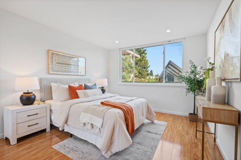 Just one-half mile from downtown San Mateo and one mile from Burlingame Avenue, this rarely available first-floor condominium has 3 bedrooms and 2 baths in a signature mid-century building. Ideal opportunity for downsizing without giving up space or location. Towering porte cochere entry, secure access to an atrium-style lobby, or from the gated underground garage. The updated and thoughtfully arranged floor plan has abundant natural light with expansive tree and clubhouse view windows. Recent updates include gleaming laminate wood floors, refreshed kitchen and baths, updated lighting, and a soft neutral palette. Bedrooms are privately positioned, including a primary suite with extensive closet space and a beautifully finished bath, plus there are two bedrooms and a bath in a separate wing. Same-floor coin laundry with storage unit, and a mid-century clubhouse with pool, spa, sauna, and fitness center. Midway between San Francisco and Silicon Valley and just minutes to SFO.