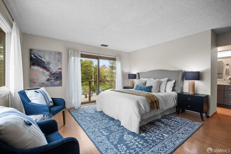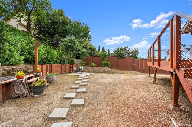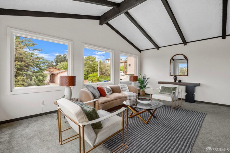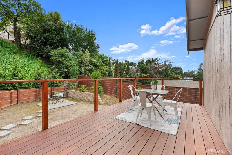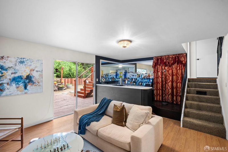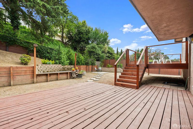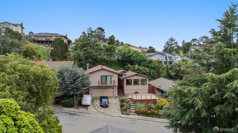 This spacious, tri-level, 4-bedroom 3-bath home nestled in the quiet hills of Hasford Heights offers spectacular sunset views of San Pablo Bay. Perfect for entertaining, it boasts a full-sized indoor bar with beer taps, gas fireplace, karaoke stage, and multiple seating areas with views. The large landscaped backyard includes a lower and upper deck for outdoor enjoyment. The primary bedroom showcases a scenic balcony, large walk-in closet, and full bathroom. Updates include a recently renovated kitchen, bathrooms, laundry room, large Renewal by Anderson windows, System Pavers in the front yard, newly installed cable railing, and fiber optic high-speed internet to the node. Walking distance to various Wildcat Canyon trails leading to breathtaking views of San Francisco Bay. 10-minute drive to Del Norte BART. Easy access to freeway, 19 miles from high-end shopping and fine dining in San Francisco, Marin County, and Walnut Creek.