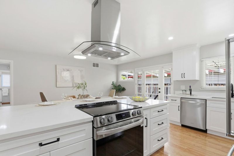 Welcome to this beautifully updated home in highly desirable Killarney Farms neighborhd: perfect blend of modern upgrades, indoor-outdoor living, & prime location.3bed, 2baths, 1,727 sq ft on a 6,000 sq ft lot featuring hardwood floors throughout, fresh interior paint, & abundance of natural light creating a warm/inviting atmosphere. Fully remodeled kitchen is the heart of the home, showcasing new soft-close cabinetry, quartz countertops, breakfast bar island, stainless steel appliances, a sleek stainless hood; perfect for everyday living & entertaining. Enjoy seamless indoor-outdoor flow w 3 separate access points to the backyard: kitchen to patio; ideal for BBQs/casual dining.Off the living room to a peaceful seating area surrounded by lush landscaping, or access backyard directly from primary suite for effortless enjoyment of the solar heated pool & spa.The primary bedroom retreat includes a walk-in closet. Add'l highlights include: Double pane windows, recessed lighting, ceiling fans in bedrooms, all new interior doors, large family/living rooms. 2-car garage w storage.Ideally located mins to Kaiser, Apple & Nvidia campuses, walking distance to shopping/dining, close to 101/280. Both comfort & convenience in one of the areas most sought-after neighborhoods.