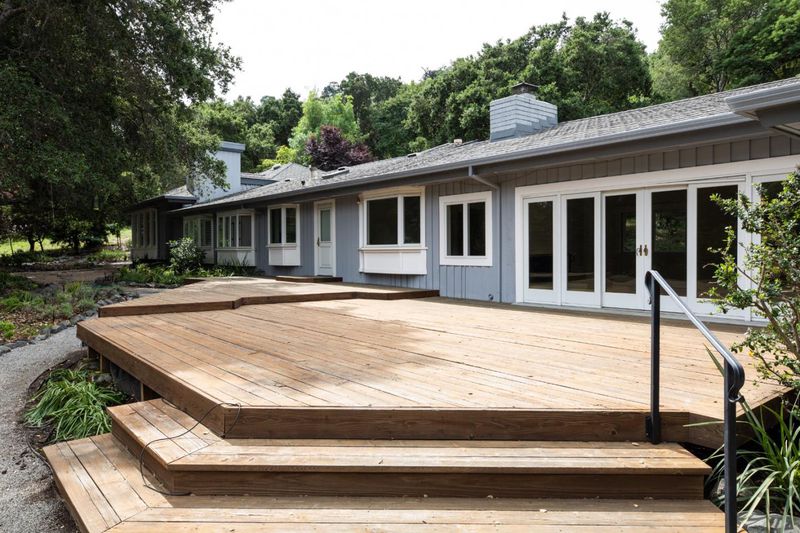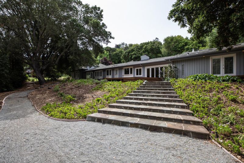 Generous scale and a one-level floor plan with subtle elevations define this home with 3 bedrooms, a large office, and 4 full baths. Offered for the first time in more than 45 years, the property spans just over one acre of mostly level land set back from the street amid mature foliage and open spaces. Interiors are defined by elaborate millwork, hardwood and carpeted floors, and numerous skylights. The updated kitchen and adjacent family room serve as the central gathering space, while the formal living and dining rooms are well suited for entertaining. A separate bedroom wing includes a spacious primary suite with fireplace, multiple closets, and a marble-appointed bath. On the opposite side, a large office with adjacent bath provides flexibility for work-from-home or guest use. Expansive grounds with a large deck, walking paths, and mature trees complete the setting, just minutes from Highway 280 and top-rated Los Altos schools.