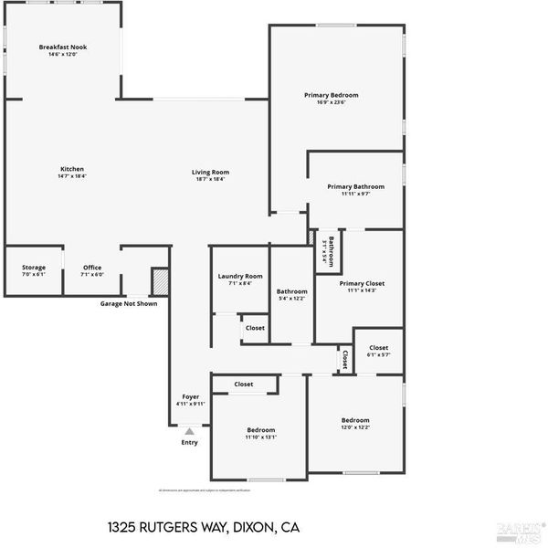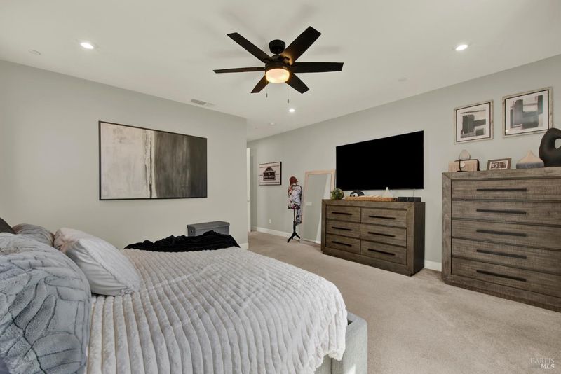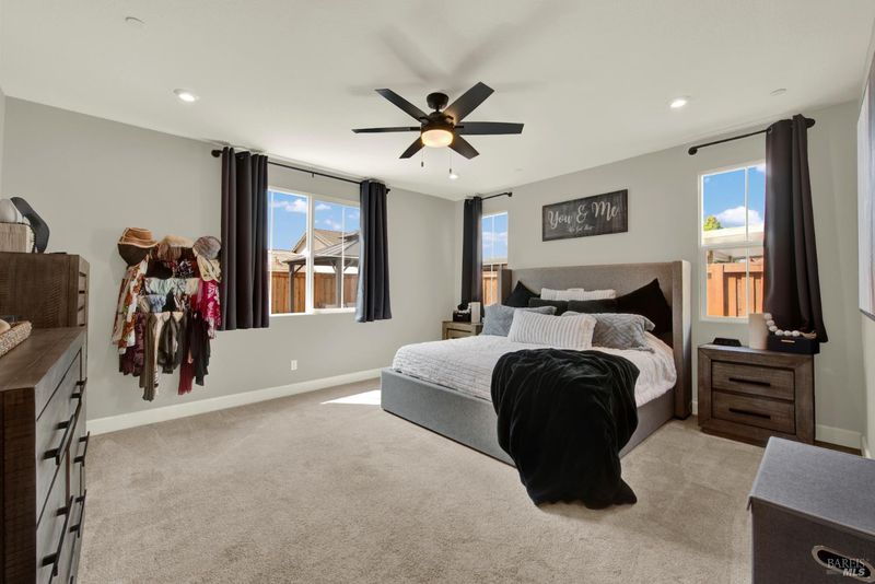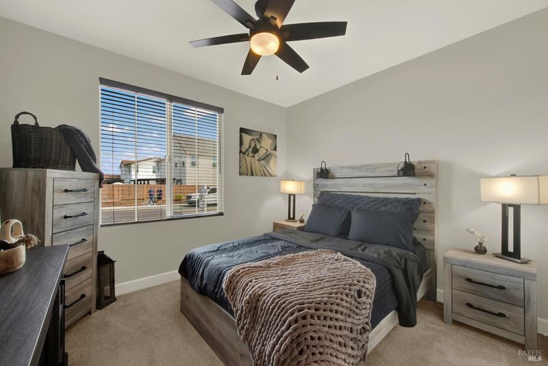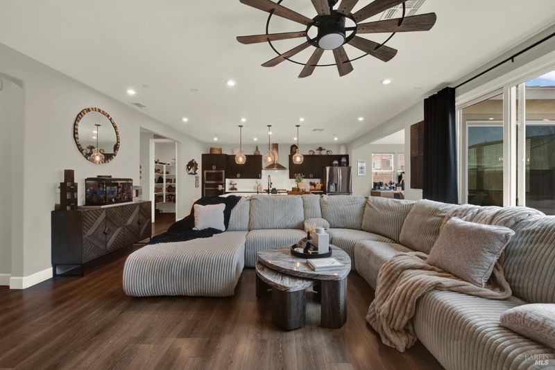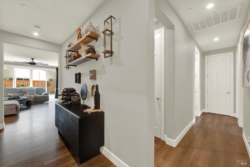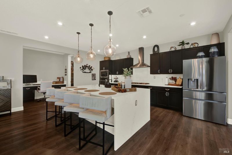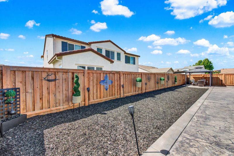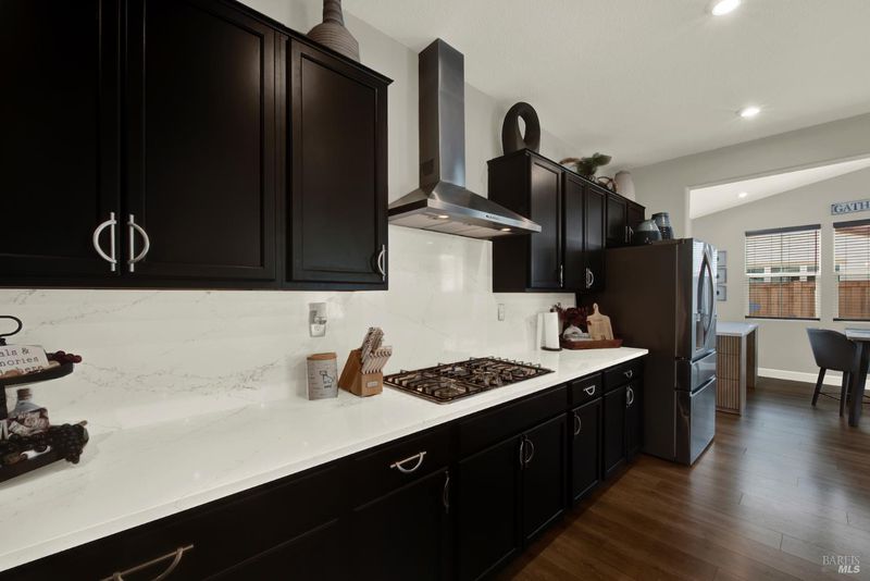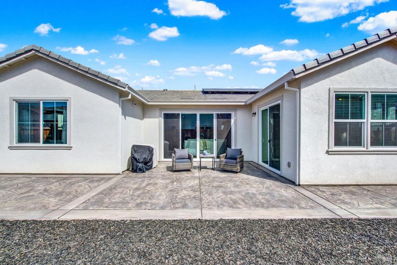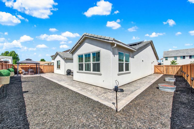This ranch style home was built in 2023 by Richmond American. This home also features newly upgraded features throughout. This Decker floor plan welcomes you with convenient 2 car garage and charming covered entry. Inside, a spacious great room that opens to the newly upgraded kitchen and dining room. The kitchen features a large waterfall eat-in island with sink, stainless steel energy efficient appliances, 5 burner gas built-in cooktop, oven, microwave, refrigerator and a large walk-in pantry. There is an office space off of the kitchen and a wine storage area. Relax in a spacious owner's suite, which boasts an oversized walk-in closet and private bath with dual vanity, jetted tub and shower stall. The other 2 bedrooms, full bath and large laundry room are located opposite side from the owners suite. The owner added a water softener system. The water heater is tankless and the 6 solar panels are owned. The landscaping is low maintenance, auto sprinkler system, new custom stamped concrete patio-walkway and gazebo perfect for your gatherings with friends and family.