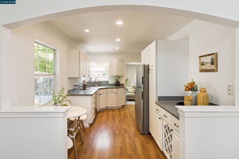 Charming cottage surrounded by a lovely landscape blends 1940s character with modern comfort and livability. This 2-bedroom, 1-bath home features a welcoming living room, gas-burning fireplace and large picture window. Energy-efficient recessed lighting complements a bright, well-designed eat-in kitchen with SS appliances, including a new 5 burner gas range and refrigerator. The updated garage conversion adds flexible living space and opens to a covered patio, level lawn with plenty of room to garden, play and entertain! Separate semi-finished out-building offers storage, fits a small car and offers desirable space to create a finished office, studio, or workshop. Situated in a coveted neighborhood, offering a peaceful suburban atmosphere, commuters will love the half mile to BART, while walkers will enjoy strolling to Todos Santos Plaza and vibrant restaurants, cafés, and retail of downtown Concord. With its expansive flat lot, endless possibilities for outdoor living including room for a pool or expansion, this cottage is a rare find combining charm, space, and convenience!