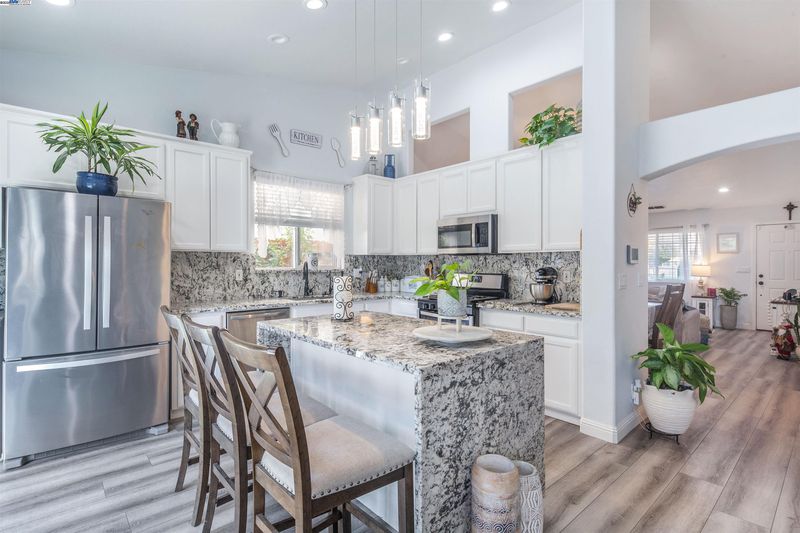 Welcome to this stunning, completely updated 4-bedroom, 2-bathroom home that perfectly blends modern comfort with timeless style. From the moment you enter, you’ll love the layout featuring a formal living room and dinning room, upgraded flooring, fresh paint and abundant natural light. The spacious living area flows seamlessly into a beautifully remodeled kitchen complete with stone countertops, stainless steel appliances, and ample cabinet space—ideal for everyday living and entertaining. The private primary suite offers a relaxing retreat with an updated bathroom and generous closet space. Three additional bedrooms provide flexibility for family, guests, a home office, or a playroom. Both bathrooms have been tastefully refreshed with contemporary finishes. Step outside to enjoy a low-maintenance backyard perfect for outdoor dining, gardening, or unwinding after a long day. Not to mention an abundance of fruit trees such as peaches, plums, pomegranates and lemons. New side gate with RV or boat access and solar(leased). Thoughtful upgrades throughout, and a convenient location near schools, parks, dining, shopping, and commuter routes, this home checks every box. Don’t miss your chance to own this beautifully updated gem—move-in ready and waiting for you!