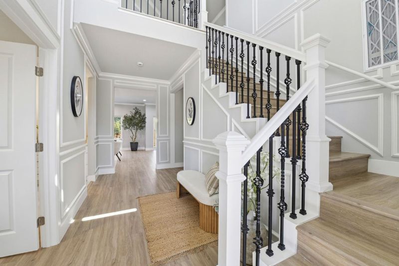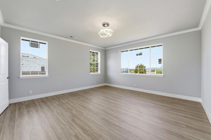 Situated in the private Community of the Hayward Hills, This New Build two-story residence in the Fairview area of Hayward provides an exceptional living experience within the Maud Vista View community. The home features a thoughtfully designed layout with four bedrooms and three bathrooms, including a primary suite and a versatile second-floor loft. The quality-focused interior boasts a custom kitchen finished with quartz countertops and a large prep island. High-end finishes such as stylish cabinetry and modern flooring extend throughout the open floor plan. A full bedroom and bathroom on the first level offer ideal accommodations for guests or multi-generational needs. Notable amenities include a roof-mounted solar photovoltaic system, residential fire sprinklers, and a dedicated upstairs laundry room. Situated on a 5,000 square-foot lot at the end of a quiet cul-de-sac, the property offers scenic sunset views overlooking the Bay. Local students are served by the Hayward Unified School District, with Fairview Elementary, Bret Harte Middle, and Hayward High School all located nearby.