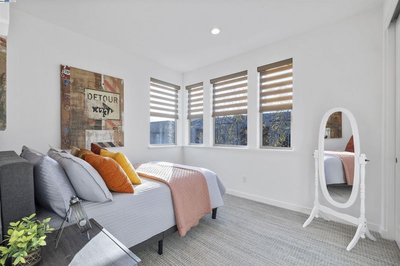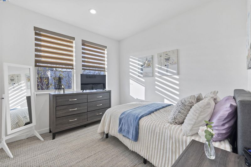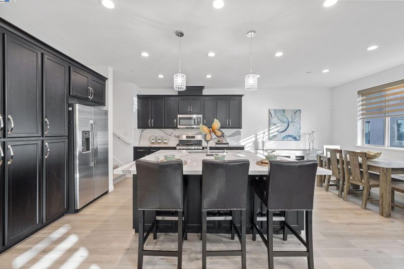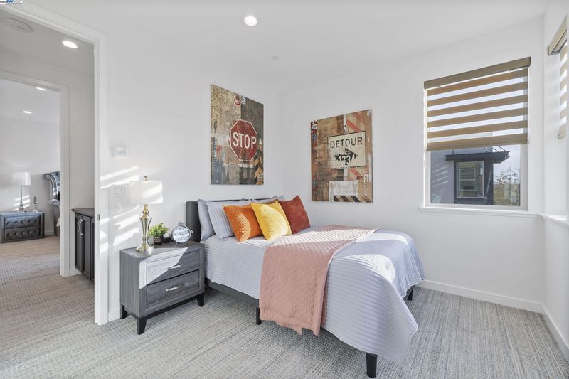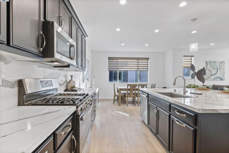 Corner end unit • Boulevard Rec Center with resort-style pool • Near BART, Don Biddle Community Park and future Shamrock Hills TK-8 2020-built townhome-style condo in the Boulevard community with 3 bedrooms, 2.5 baths and approx. 1,574 sq ft on three levels. Street-level foyer and attached 2-car garage. Open-concept main level combines living and dining areas with a kitchen featuring upgraded quartz counters, large island with breakfast bar, gas range, stainless appliances and a powder room. Upper level offers a primary suite with double-vanity bath and stall shower, two additional bedrooms, full hall bath and laundry closet. Features include remote-controlled window coverings in the main living area, laminate and tile flooring and a tankless water heater. Boulevard amenities include The Rec Center with lap and lounge pools, spa, fitness rooms, game room, clubhouse, lounges, playgrounds and pocket parks, plus Don Biddle Community Park and Iron Horse Regional Trail. Close to Persimmon Place (Whole Foods and shops), Dublin retail and dining, Dublin/Pleasanton BART and I-580/680. In Dublin Unified School District; Shamrock Hills TK-8 on Horizon Pkwy is under construction and projected to open Fall 2026 (buyer to verify). 3D and video tours plus floor plan available. MapQuest +4 Zil