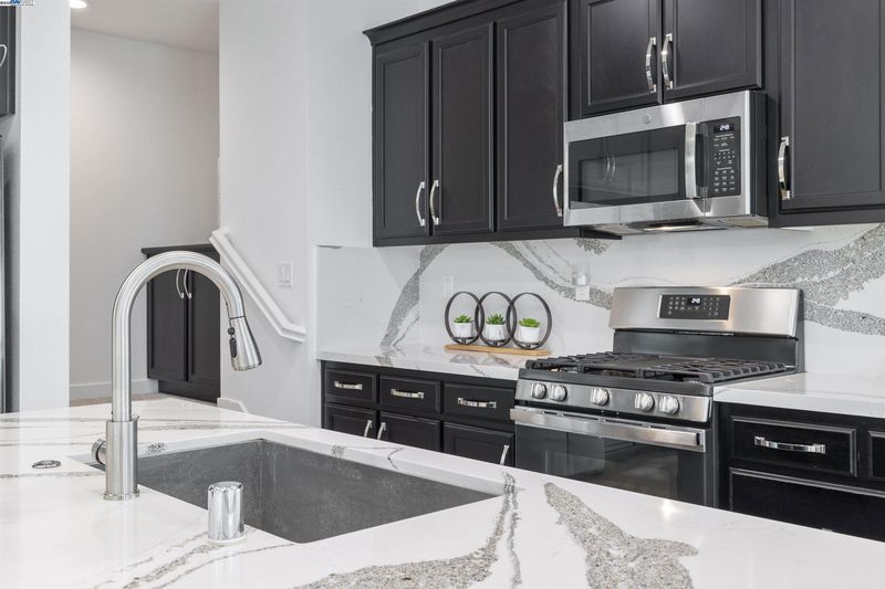 - Dishwasher, Gas Range, Microwave, Oven, Range, Refrigerator, Dryer, Washer, Electric Water Heater, Breakfast Bar, Counter - Solid Surface, Stone Counters, Disposal, Gas Range/Cooktop, Kitchen Island, Oven Built-in, Range/Oven Built-in