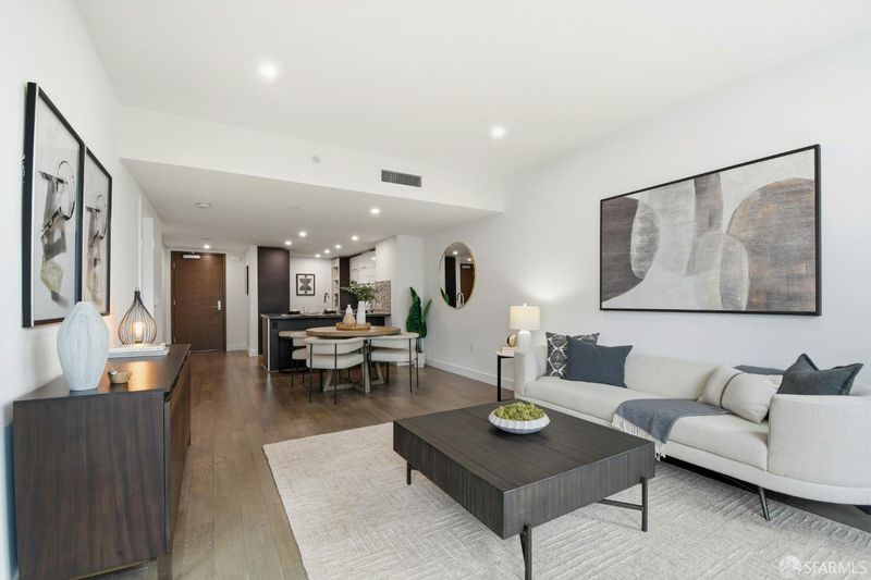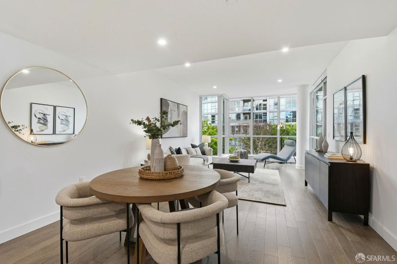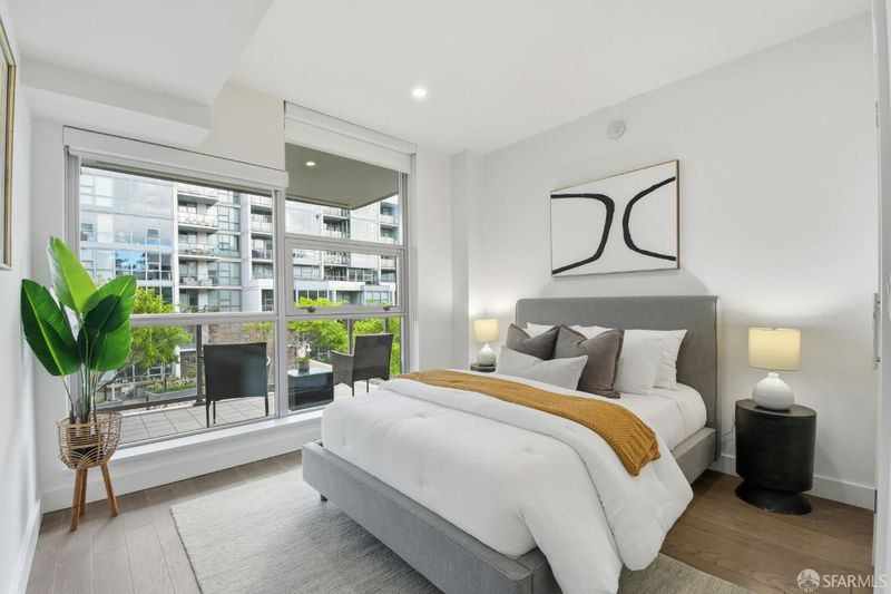 Welcome to the Madrone, where elevated city living meets resort-style amenities in the heart of Mission Bay. This sun-soaked 2-bed, 2-bath residence offers an ideal blend of comfort, sophistication, and functionality. The thoughtfully designed layout features an open-concept living, perfect for entertaining or relaxing at home, with seamless indoor-outdoor flow to a private balcony, and newly installed recessed lights throughout the home. The chef's kitchen is outfitted with sleek cabinetry and modern finishes, and the home's flexible floor plan easily accommodates a dedicated work-from-home setup without sacrificing living or entertaining space. The spacious primary suite, complete with a spa-like bathroom, generous closet space, and a tranquil, hotel-inspired feel. A well-proportioned second bedroom and full bath offer versatility for guests, a home office, or both. The Madrone is defined by its exceptional, full-service amenities. Residents enjoy a 75-foot heated saltwater pool, hot tub, dry sauna, and steam room, along with an outdoor lounge and barbecue terrace perfect for hosting friends. Additional highlights include a a fitness center, game room, and a private movie theater. Convenience and security are paramount, with assigned parking, private storage, 24/7 concierge and lobby attendant, and security patrol. Located moments from OpenAI, Oracle Park, Chase Center, Arsicault, Spark Social, Gus' s Market, Cafee Central, China Basin Park, Bayfront Park, and premier dining and nightlife, with effortless access to Caltrain, Muni, and Highway 280, this home offers the perfect balance of urban energy and everyday ease. Turnkey, luxurious, and perfectly suited for modern living - this is Mission Bay at its finest.